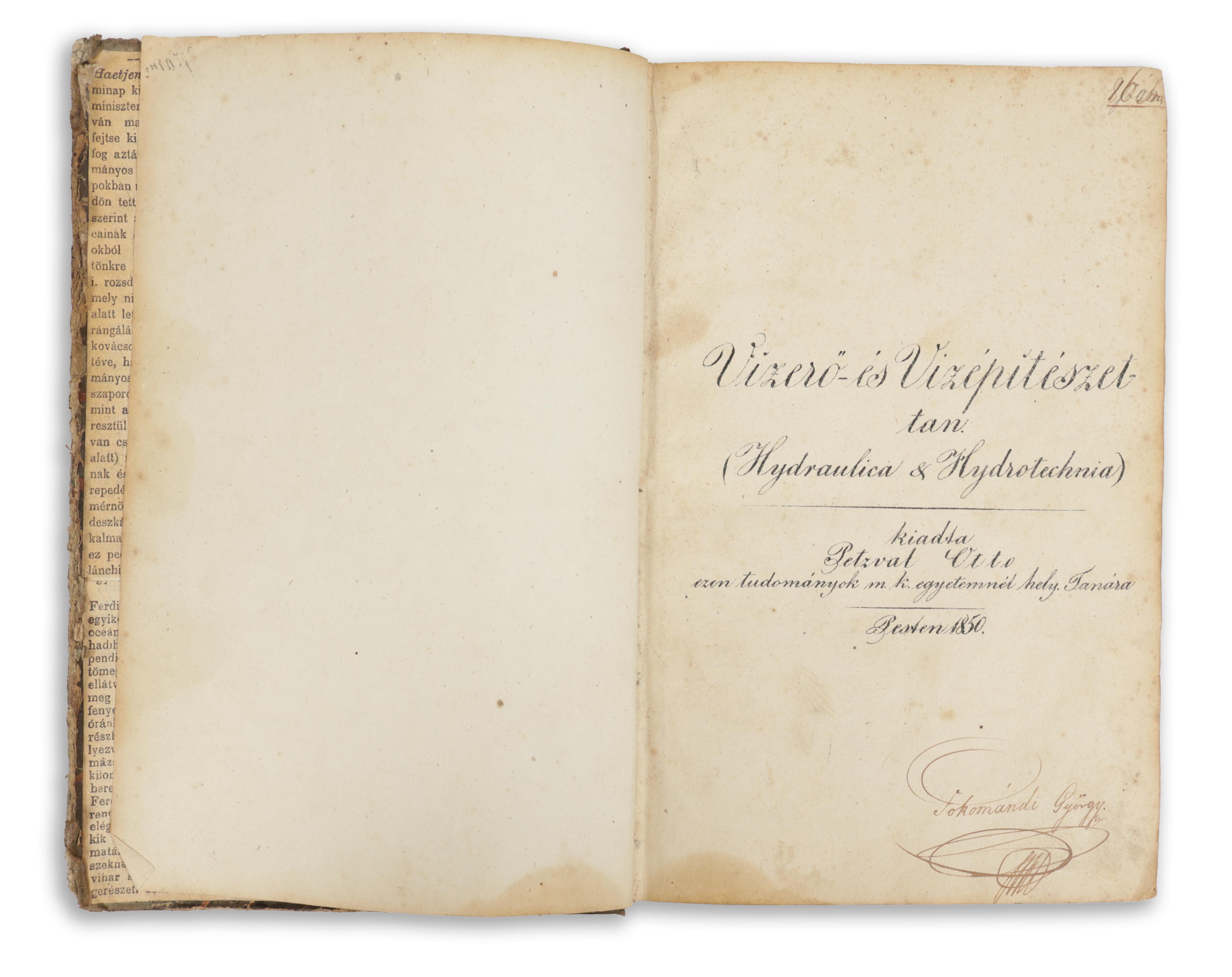 A címlapon Pokomándi György mérnök (1829-1894) possessori bejegyzése.