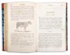 Vörös, bordázott gerincű félbőr kötés, a gerincen aranyozott felirattal, márványozott lapélekkel. A lapokon foxing.