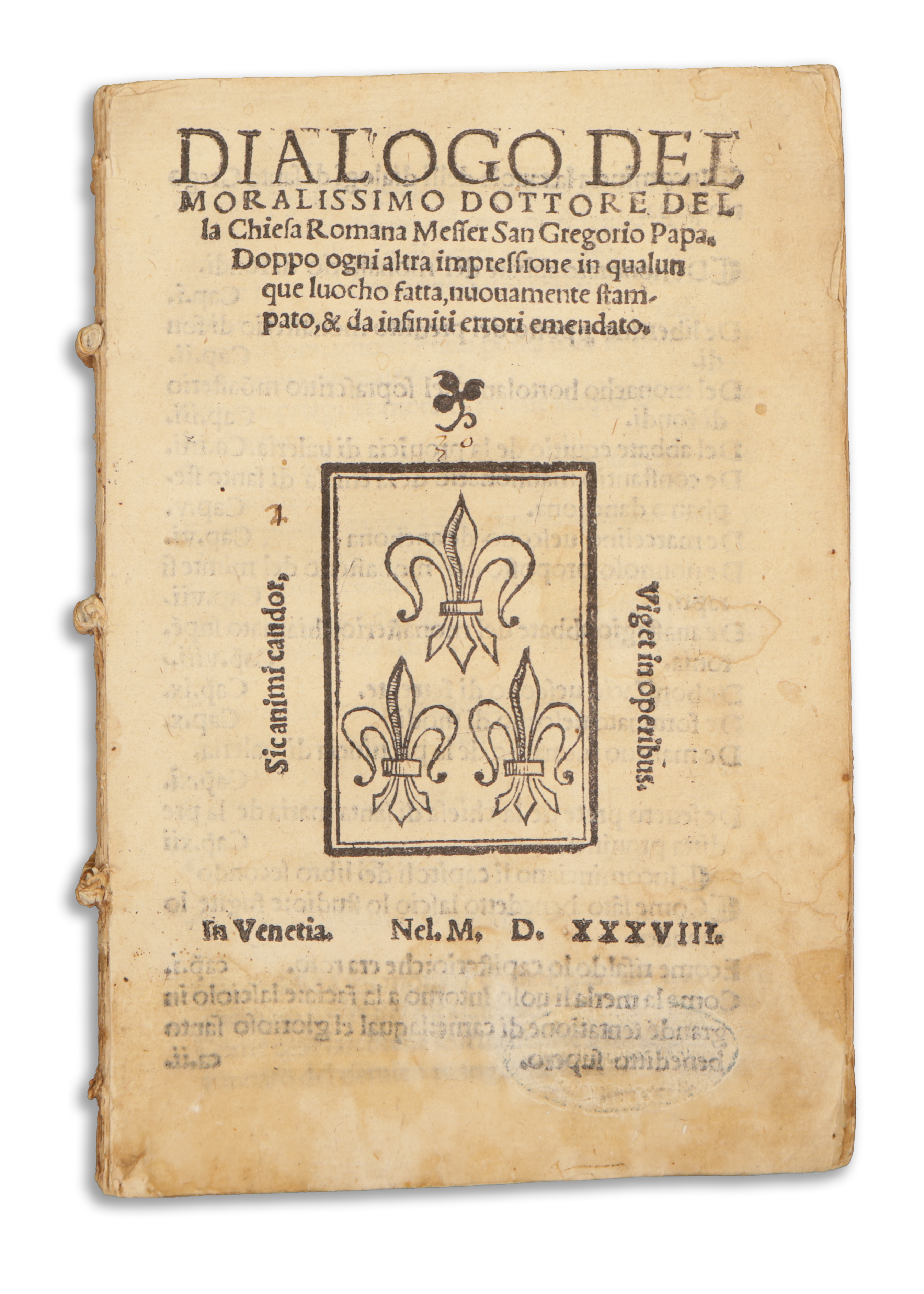 Dialogo del moralissimo dottore della Chiesa romana messer san Gregorio papa. Doppo ogni altra impressione in qualunque luocho fatta, nuovamente stampato, & da infiniti errori emendato.