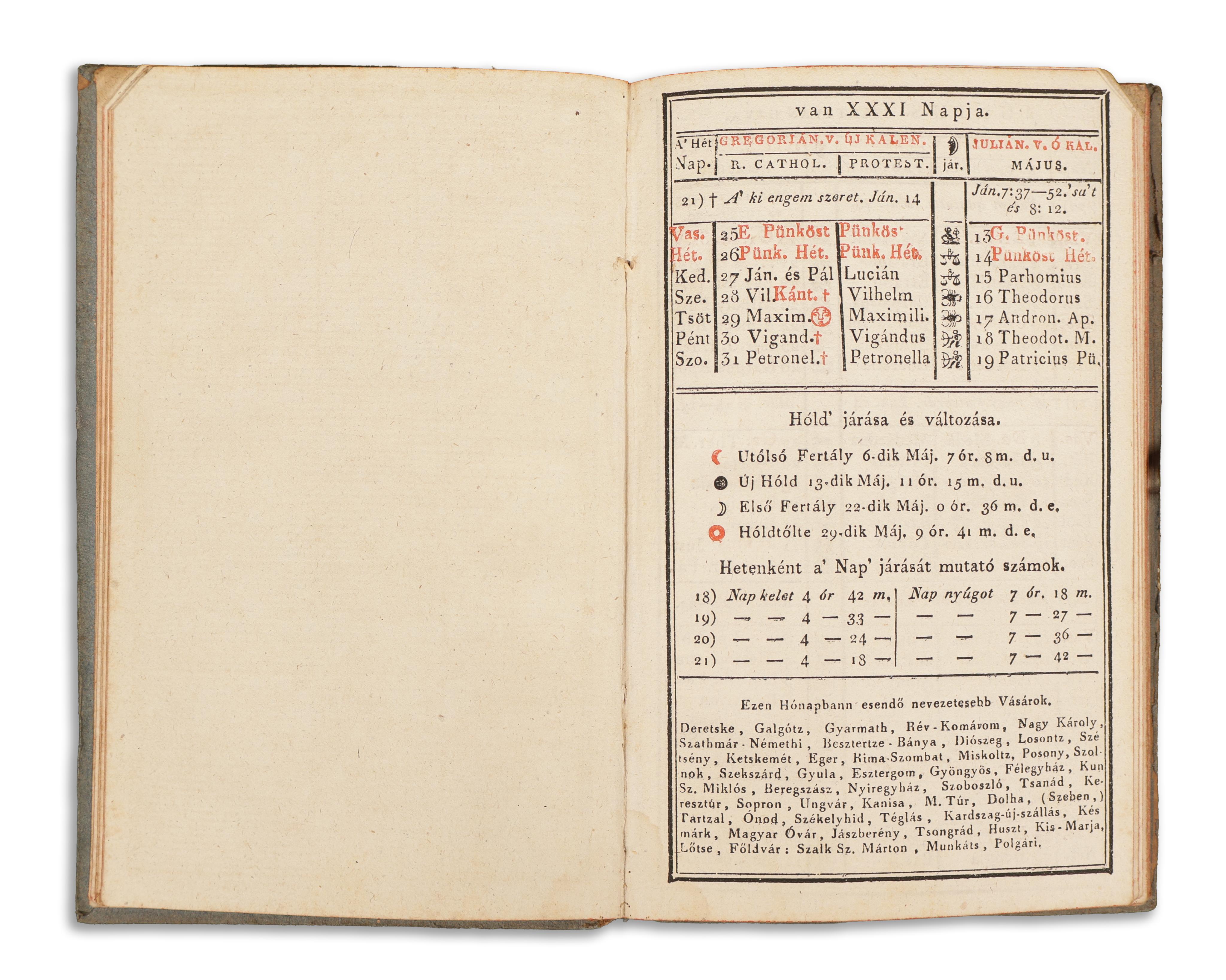 Debrecen calendar, kalender 1828