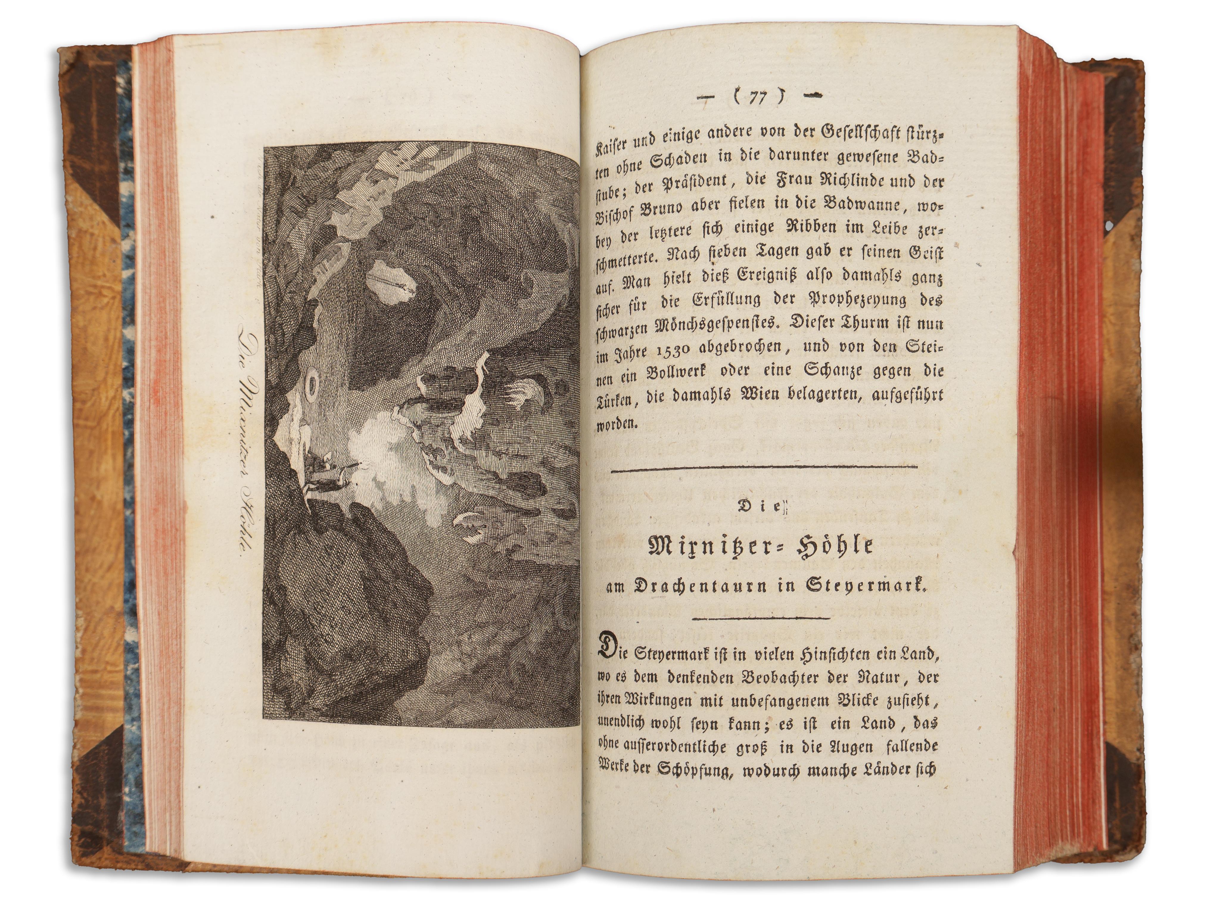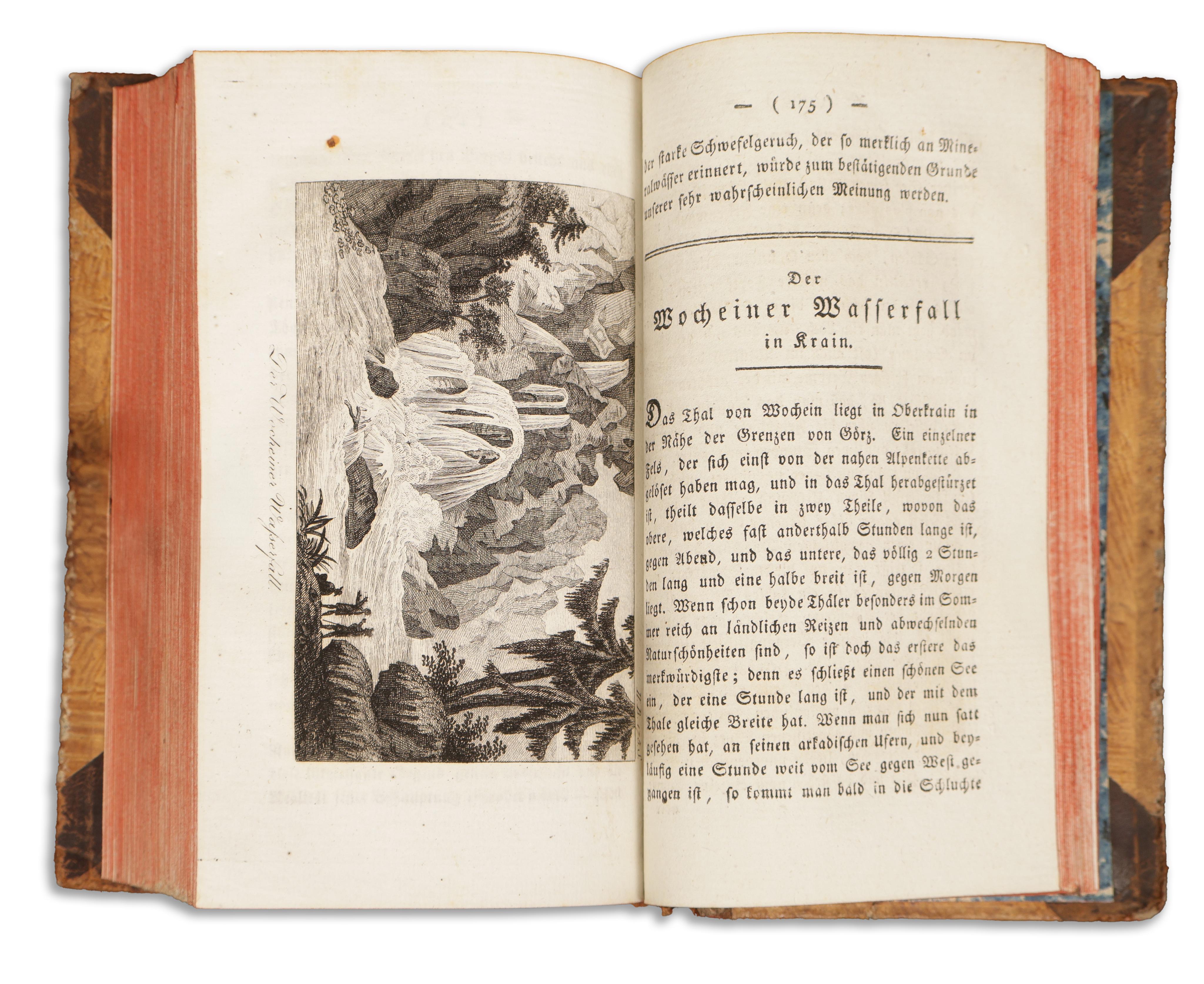 The first two volumes, bound together contain eight copperplate views and brief descriptions of various remarkable natural phenomena, notable geological and geographical features, etc. A third and fourth part were also published.