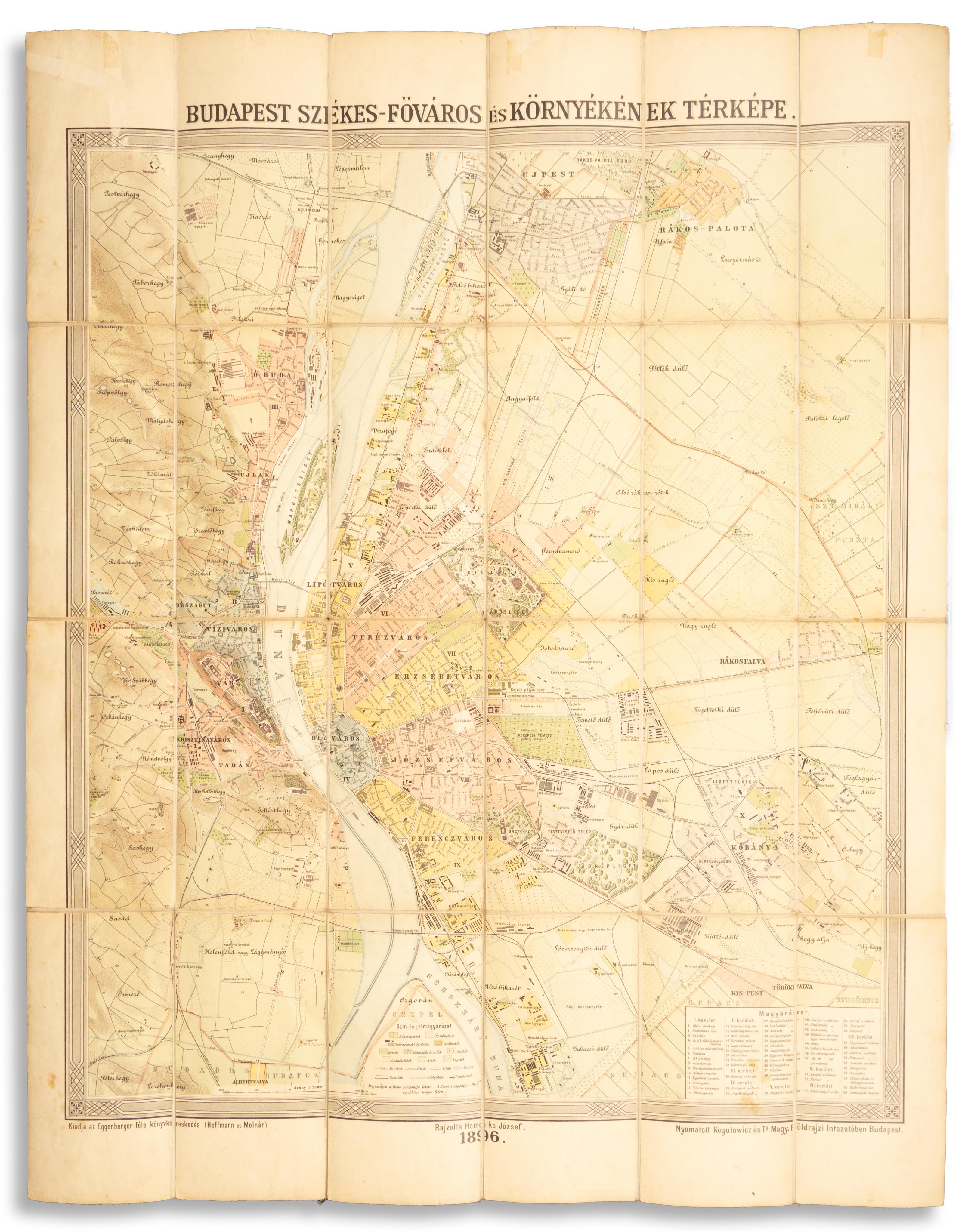 The latest map of the capital city of Budapest and its surroundings, 1896.
