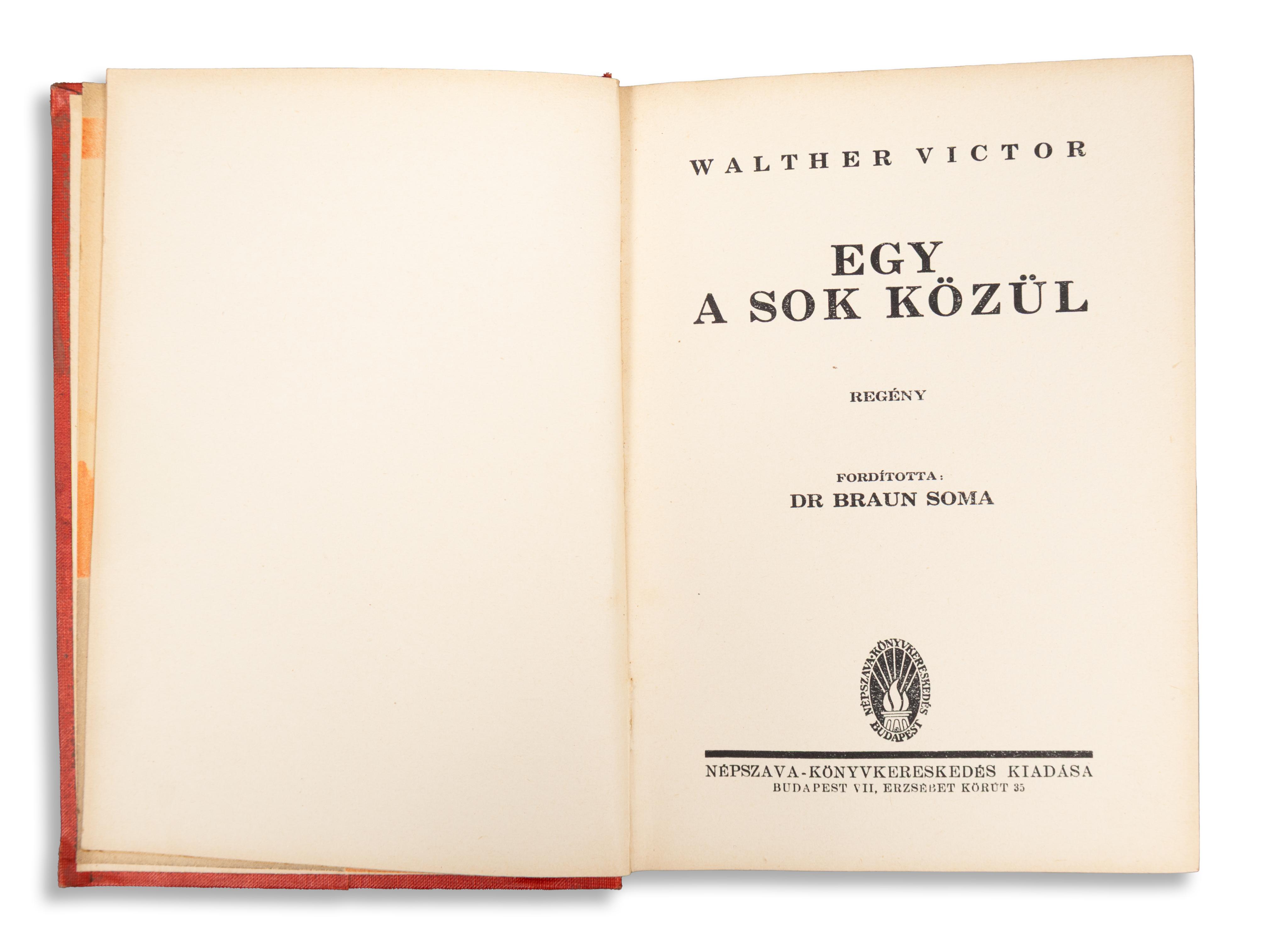 Walther Victor (1895–1971) itthon kevéssé ismert anti-kapitalista és humanista szellemű német publicista, szerkesztő és író. Svájcban megalapította a Verbano-Verlag kiadót, Amerikában az Alfred A. Knopf kiadó termelései vezetőjeként dolgozott, és több európai újság tudósítójaként akkreditálták az ENSZ-nél. 1947-ben Schwerinben telepedett le és a német irodalom klasszikusainak ismertetése céljából megalapította a nagy sikert aratott Lesebücher für unsere Zeit sorozatot.