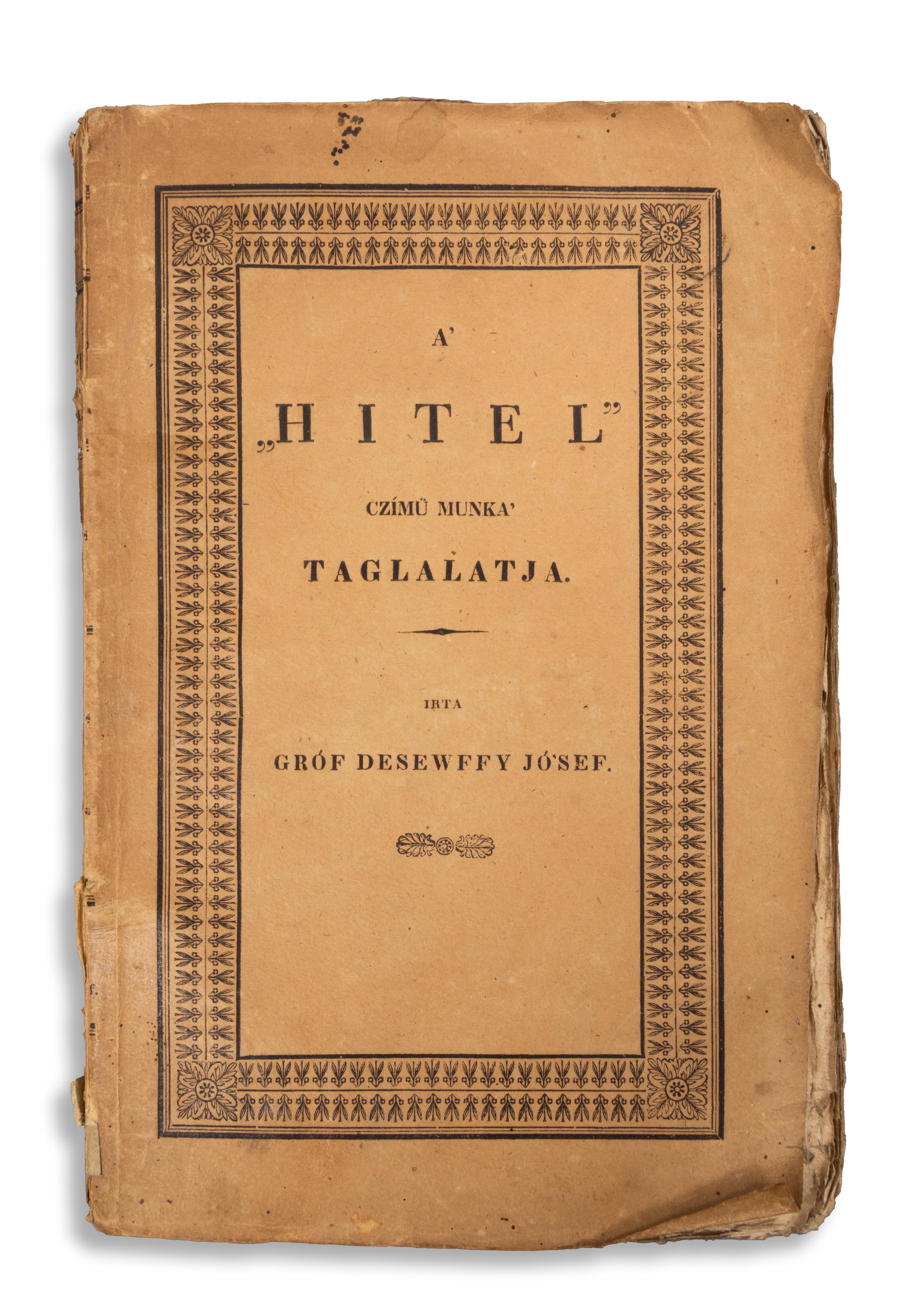 A' "Hitel" czímű munka taglalatja. Írta: - -.
