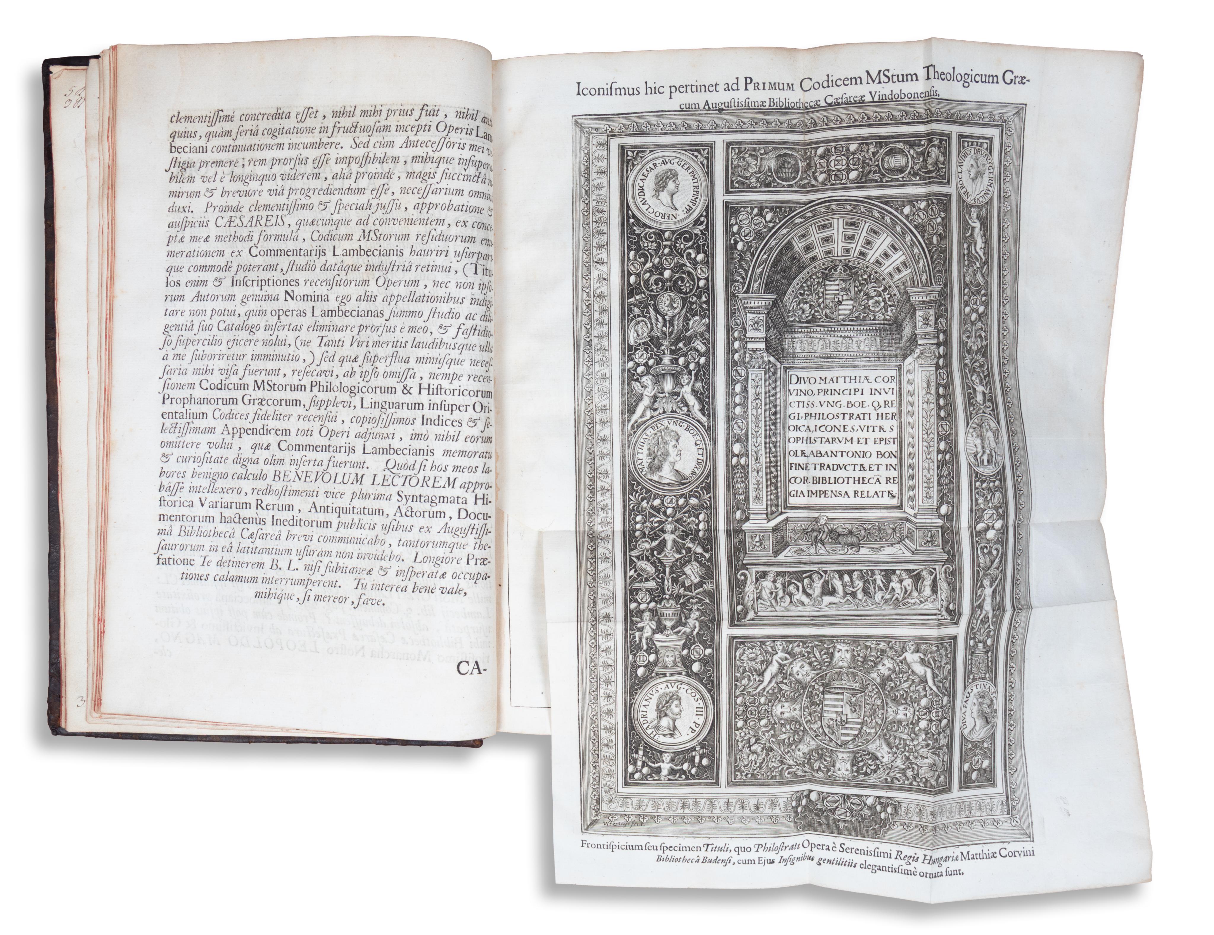A special collection, based on the manuscripts and codices of the viennese Imperial Court Library, which was made by order and under the patronage of the Holy Roman Emperor Leopold I. The work is accompanied not only by lavish chronological and alphabetical indexes, but also by an appendix. The work was prefaced by the polymath Peter Lambeck (1628-80), who compiled 8 volumes from the collection of the Imperial Court Library, which were first published between 1665 and 1679 and originally consisted of 25 books. Commentariorum de augustissima Bibliotheca Caesarea Vindobonensi...Our item is a supplement to this work by Daniel Nesser (1644-99), who continued the work of his predecessor as the keeper of the Library.