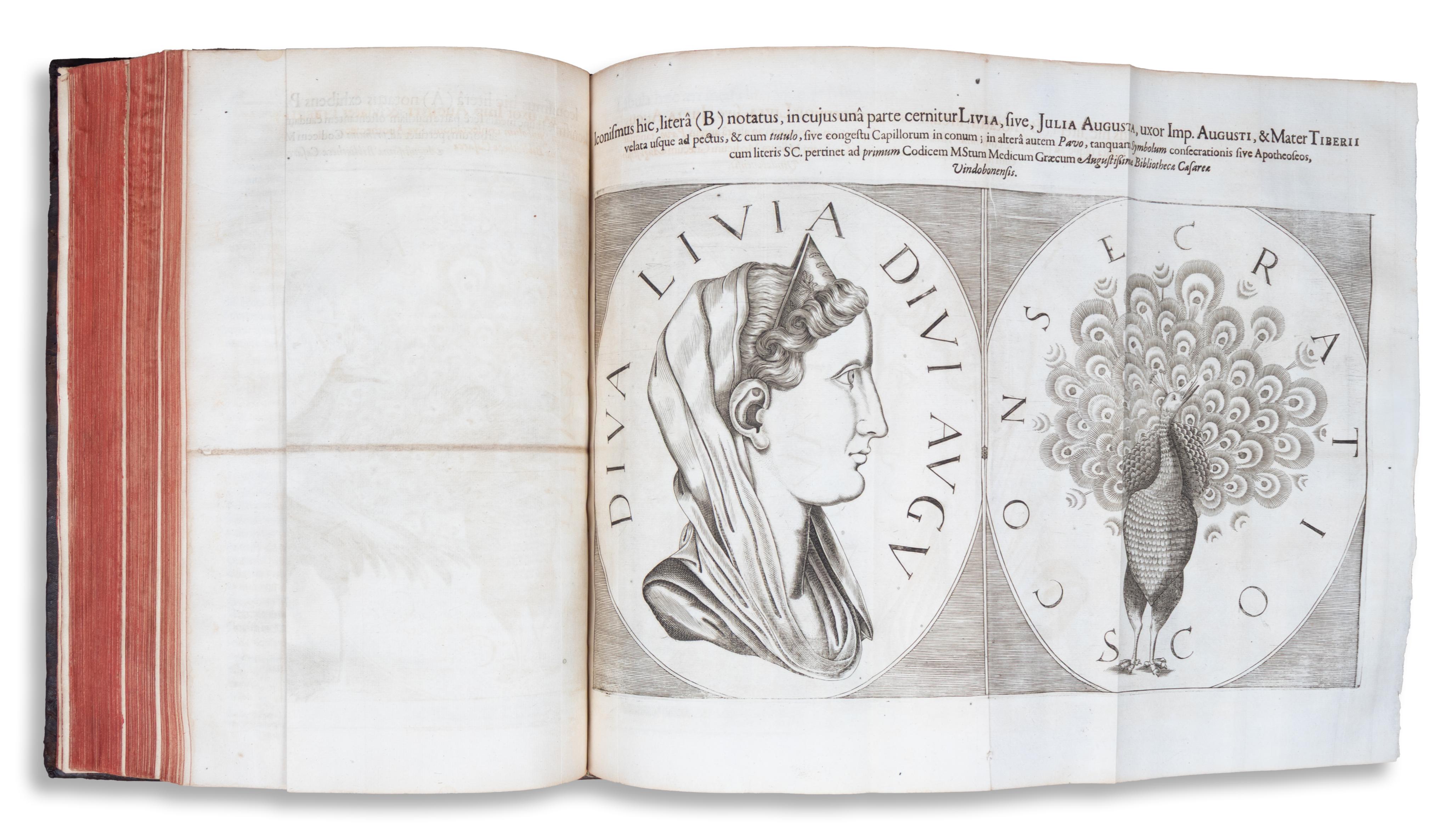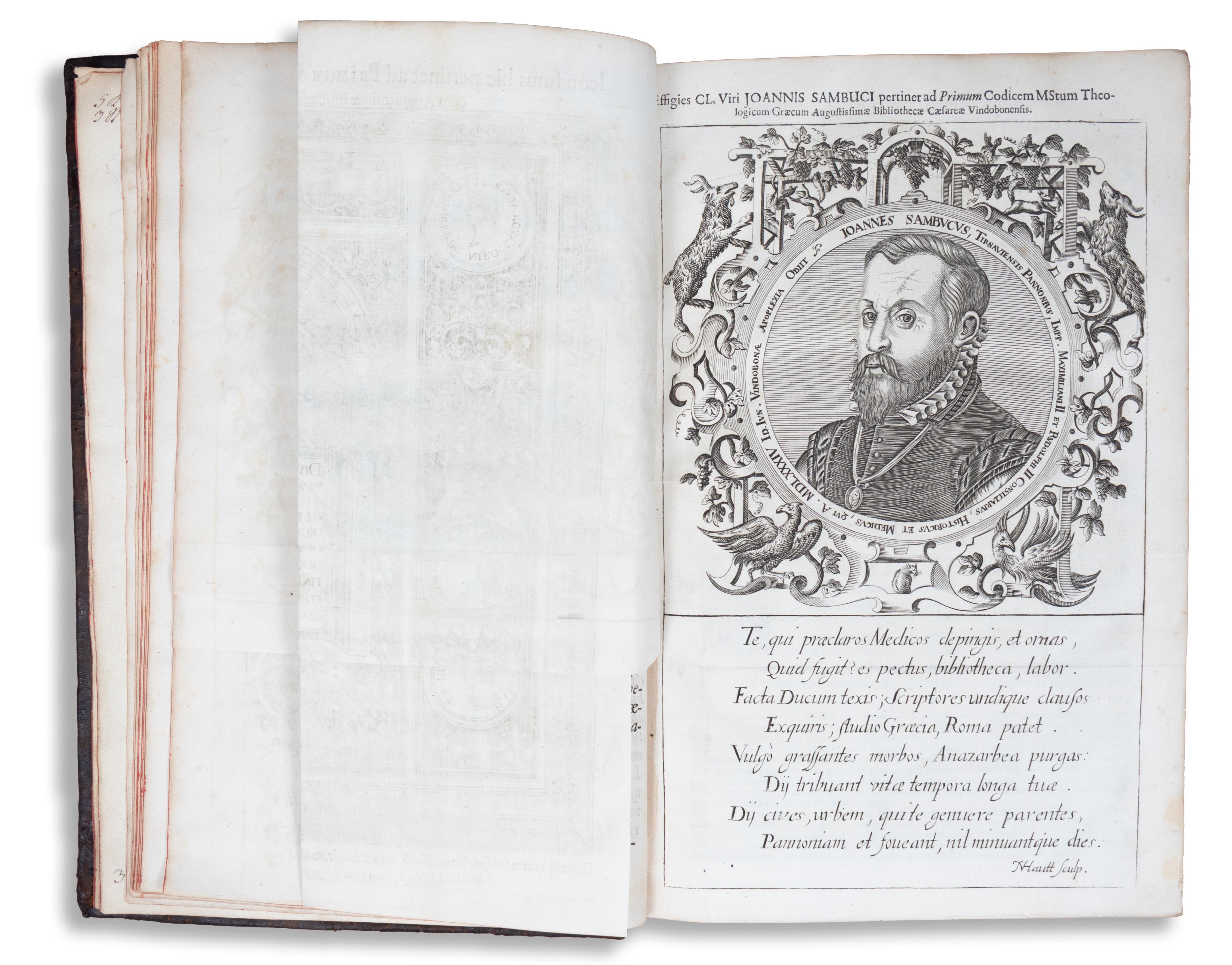 Vindobonae & Norimbergae, 1690. Voigt & Endter. Typis Leopoldi Voigt & Joachimi Balthasaris Endteri.Egészoldalas, és kihajtható rézmetszetekkel, az első részben még 24 kétoldalas metszet lapszámozáson belül. A metszeteken számos magyar vonatkozással Zsámboky János arcképe, Mátyás király Corvinája mellett görög, római tudósok és vezérek, bibliai jelenetek, mitológiai alakok, egzotikus állatok és növények is szerepelnek. A címlappal együtt összesen 58 különálló tábla található, komplett.