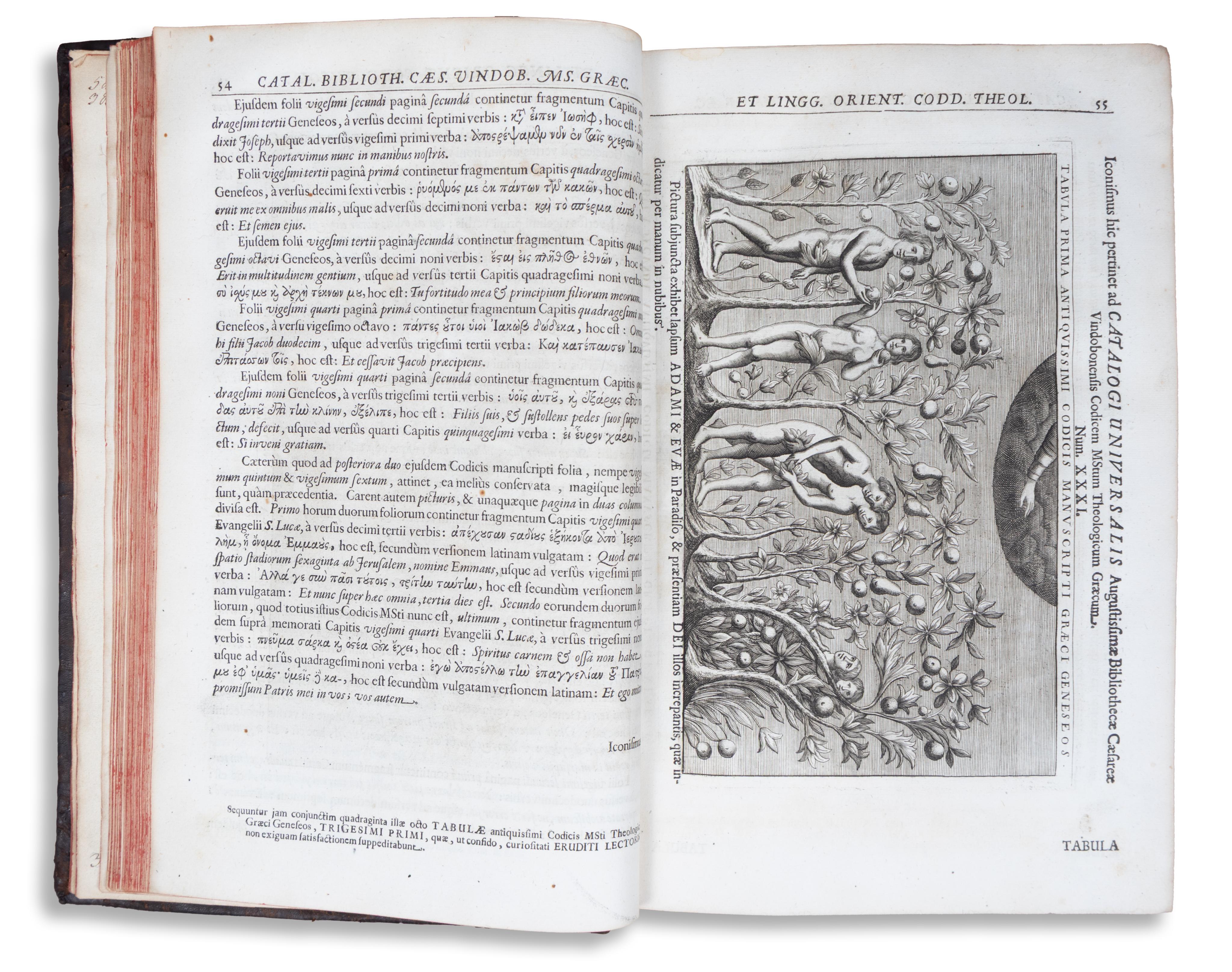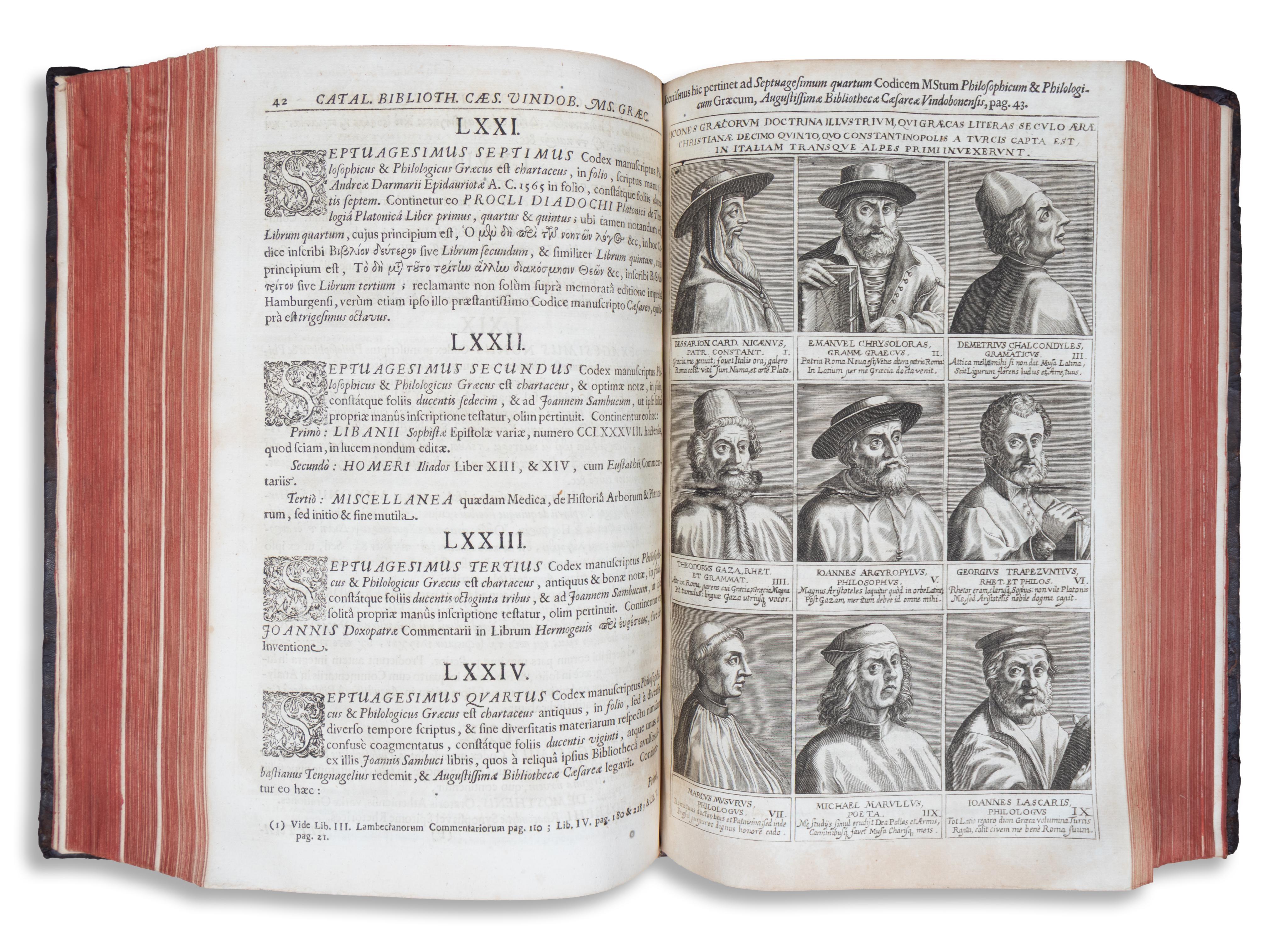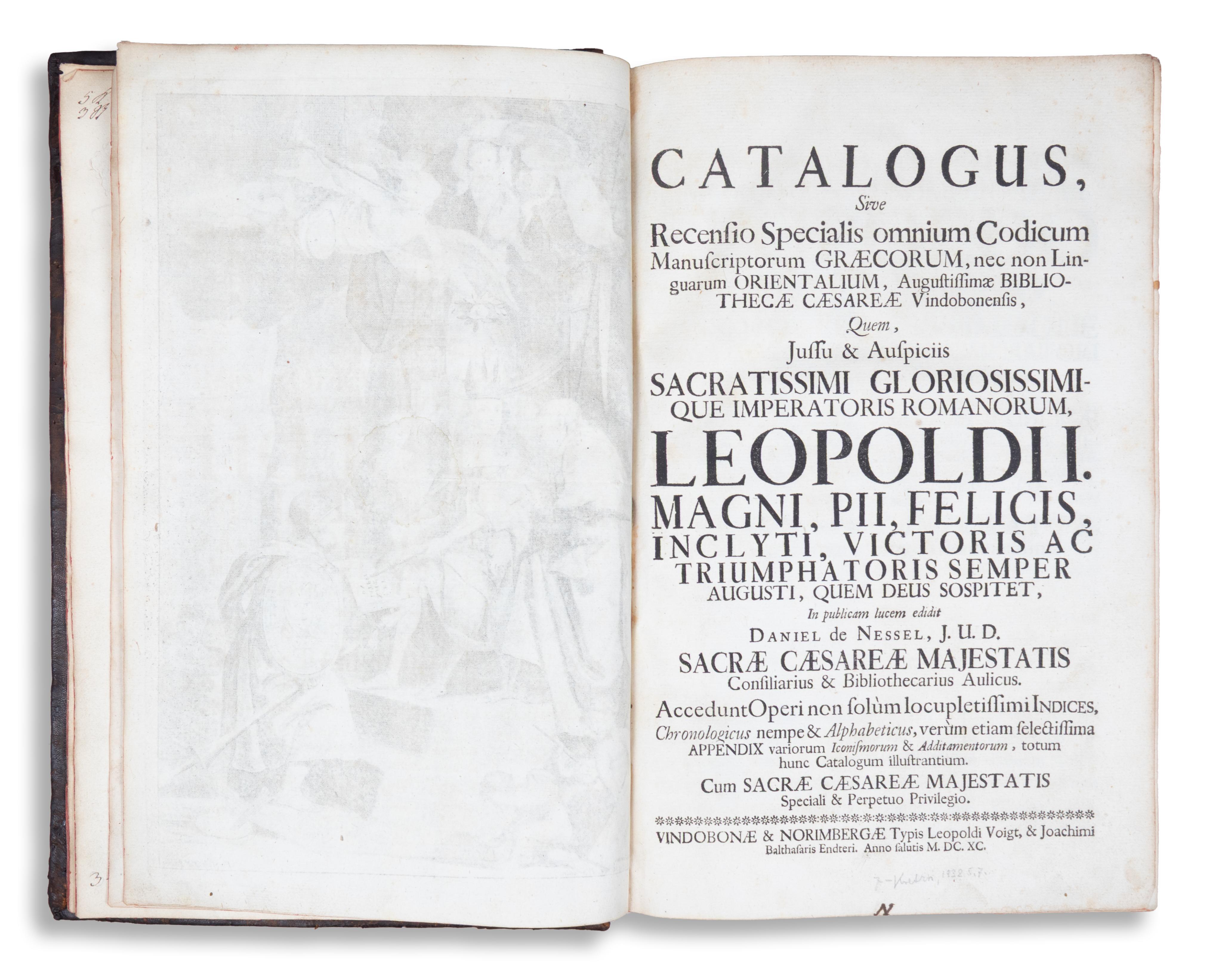 Különleges gyűjtemény, a bécsi udvari könyvtár kéziratai és kódexei alapján, amelyet a dicsőséges I. Lipót német-római császár parancsára és oltalma alatt készítettek. A művet nemcsak pazar időrendi és betűrendes tárgymutatók, hanem függelék is kíséri. A mű előzménye Peter Lambeck (1628-80) polihisztor a Bécsi Udvari Könyvtár gyűjteményéből 8 kötetet állított össze, ami először 1665 és 1679 között jelent meg, és eredetileg 25 könyvből állt volna. Commentariorum de augustissima Bibliotheca Caesarea Vindobonensi...Tételünk e mű kiegészítése Daniel Nessertől (1644-99) aki a Könyvtár őreként folytatta elődje munkáját.