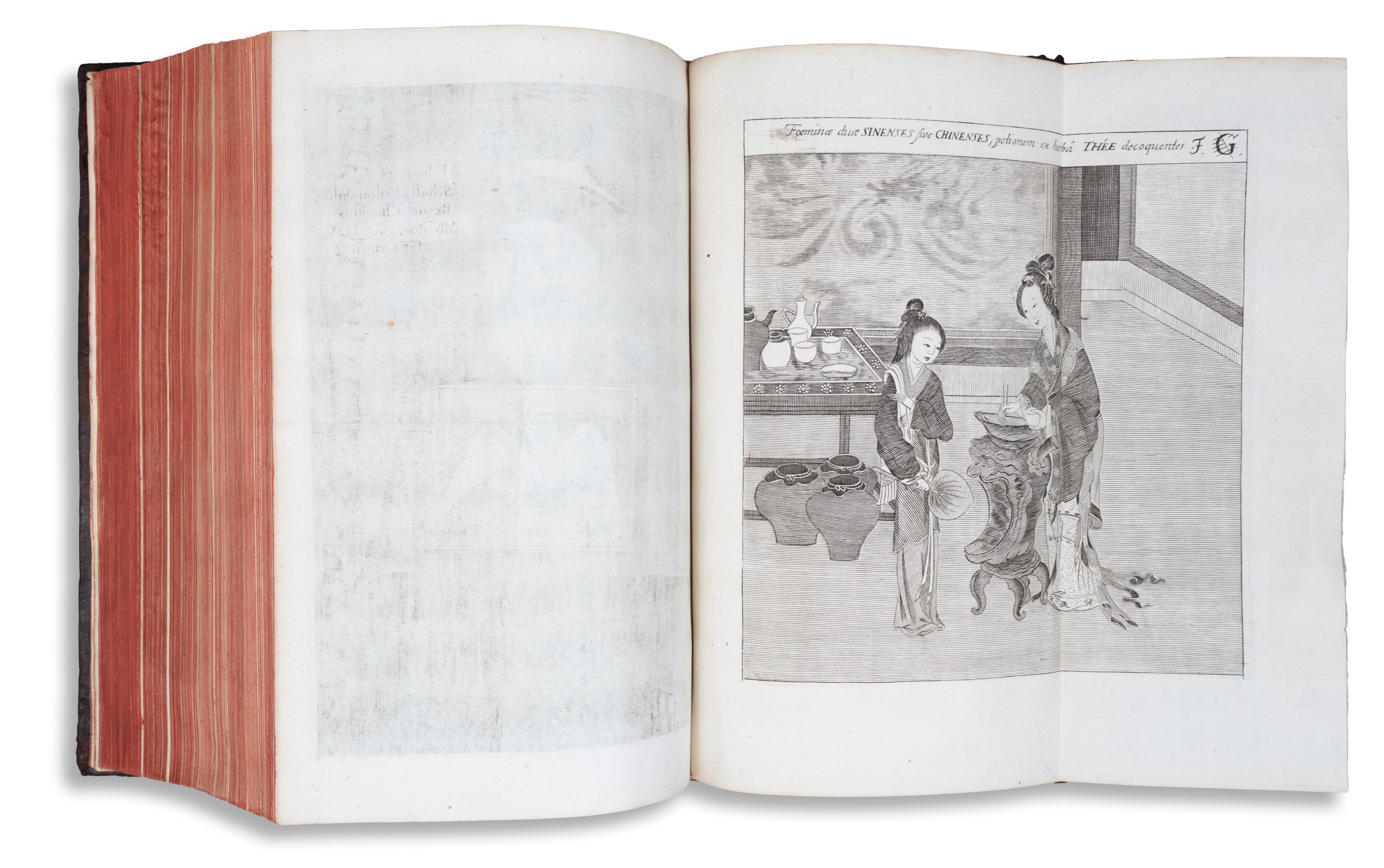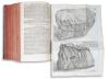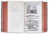 Korabeli öt bordára fűzött egész bőrkötésben, dúsan aranyozott gerinccel és címkével. A gerinc alsó és felső sarka pótolt, a táblák borítása repedezett, Körül festett lapszélekkel, tiszta levelekkel, erős levonatokkal. Jó tartású, ritka mű, gazdag illusztrációs anyaggal.