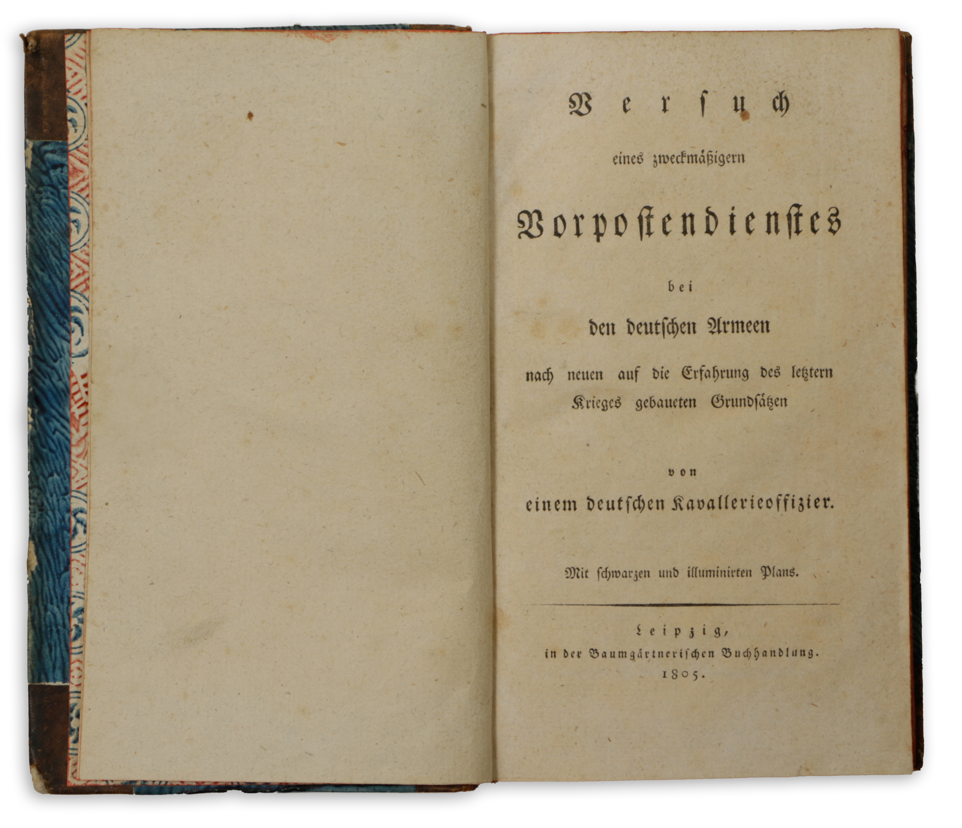 Versuch eines Vorpostendienstes bei den deutschen Armeen nach neuen auf die Erfahrung des letzten Kriges gebaueten Grundsätzen von einem deutschen Kavallerieoffizier. Mit schwarzen und illuminirten Plans.