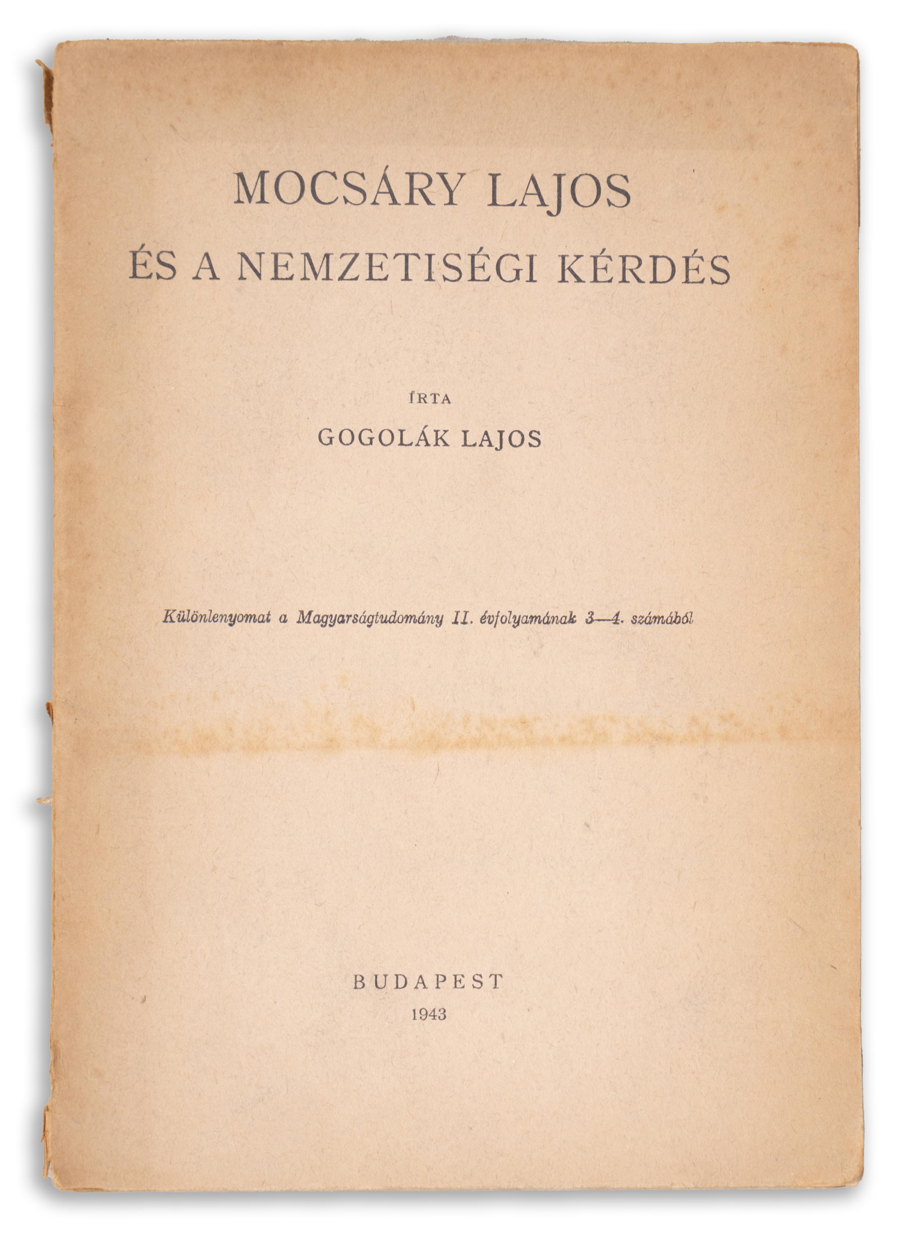 Különnyomat a Magyarságtudomány II. évfolyamának 3-4. számából. 62 + [2]p.