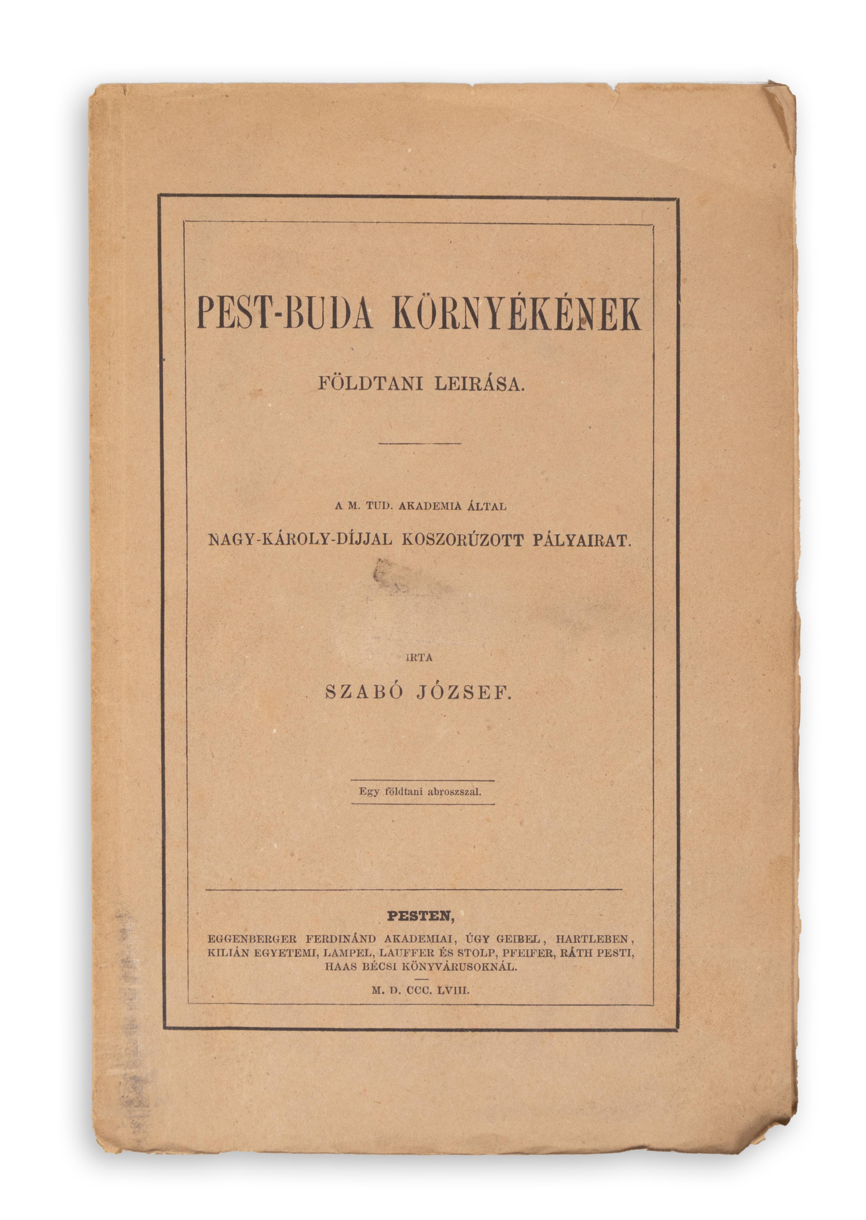 VIII +58. p. +1 kihajt. térk. (színes litográfia) Pest-Buda területének földtani térképe. Nyomt. Rohn A. Pesten. M: 43×58 cm. (Természettudományi pályamunkák. 4.)