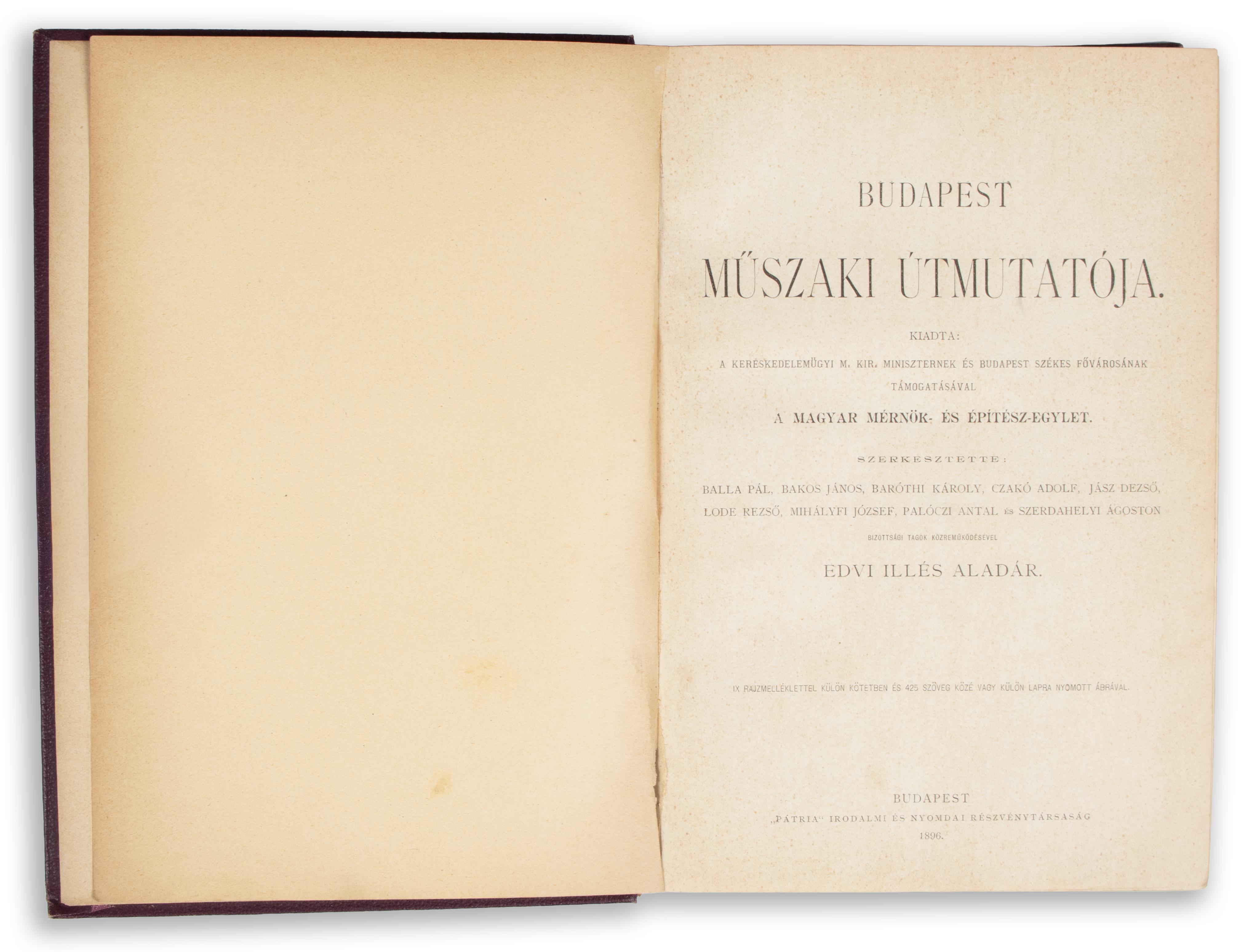 Budapest műszaki útmutatója. Kiadta a Magyar Mérnök- és Építész-Egylet. Szerk. Edvi Illés Aladár.