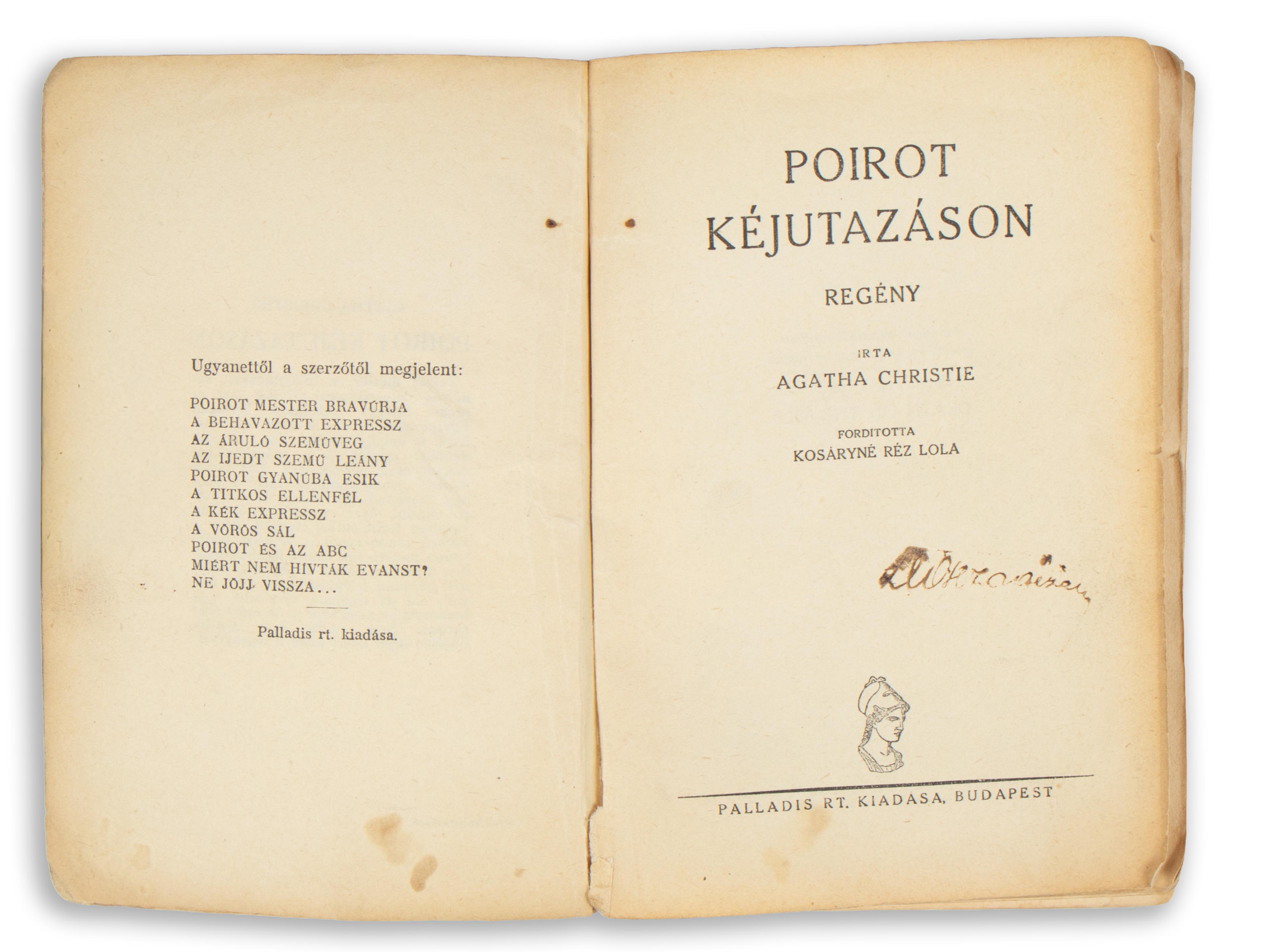 208 p. Első magyar nyelvű kiadás. 1 pengős regények. Fordította Kosáryné Réz Lola. A mű eredeti címe: Death on the Nile. Később Halál a Níluson címmel jelent meg.