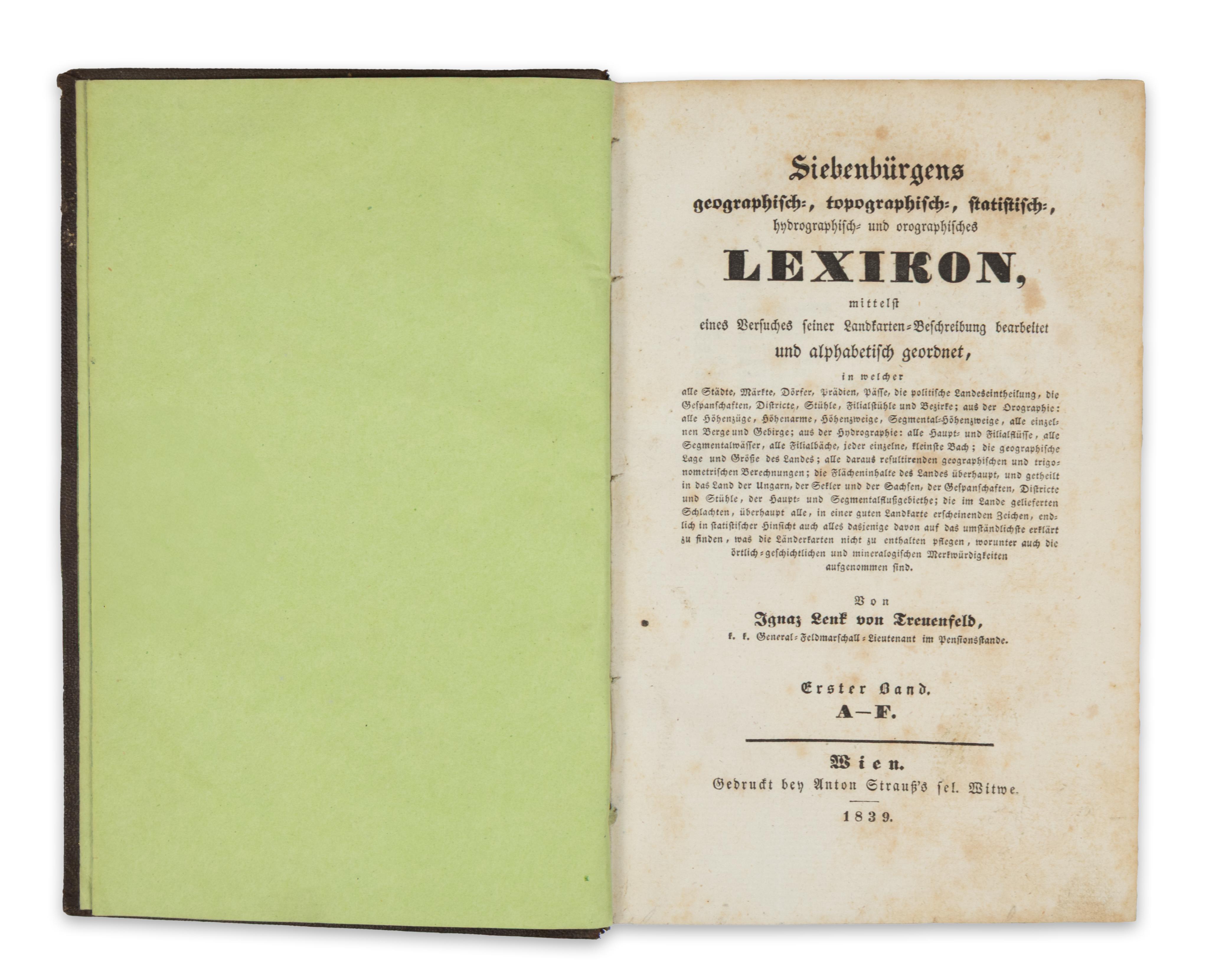 Siebenbürgens geographisch-, topographisch-, statistisch-, hydrographisch- und orographisches Lexikon, mittelst eines Versuches seiner Landkarten-Beschreibung bearbeitet und alphabetisch geordnet... von --. I-IV. Bände.