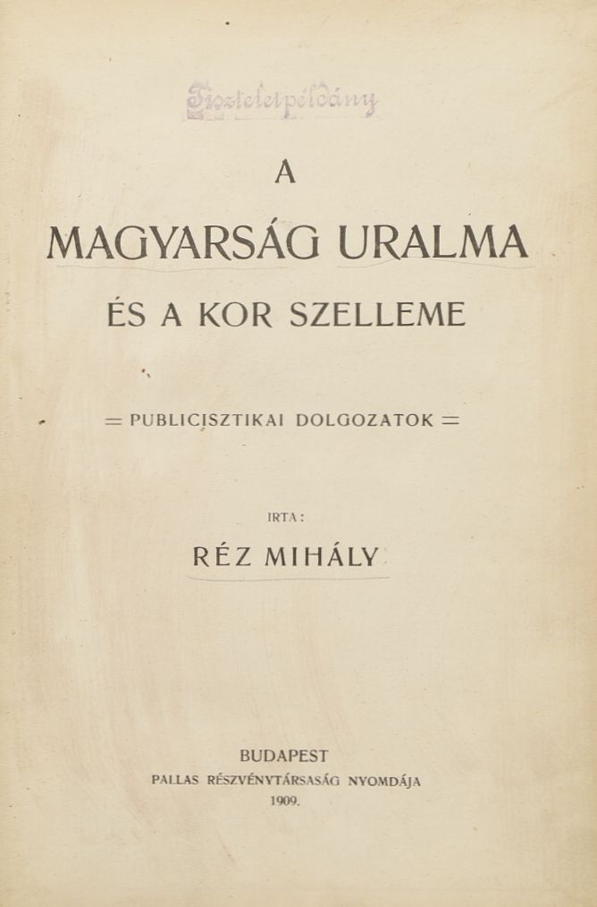 A címlapon pecsét: "Tiszteletpéldány".
