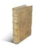 Contemporary full pigskin binding with ribbed spine and blind-stamped decorations. Worn copy, binding is weakening. The engraving is glued to the verso of the first panel. Its original buckles are missing.