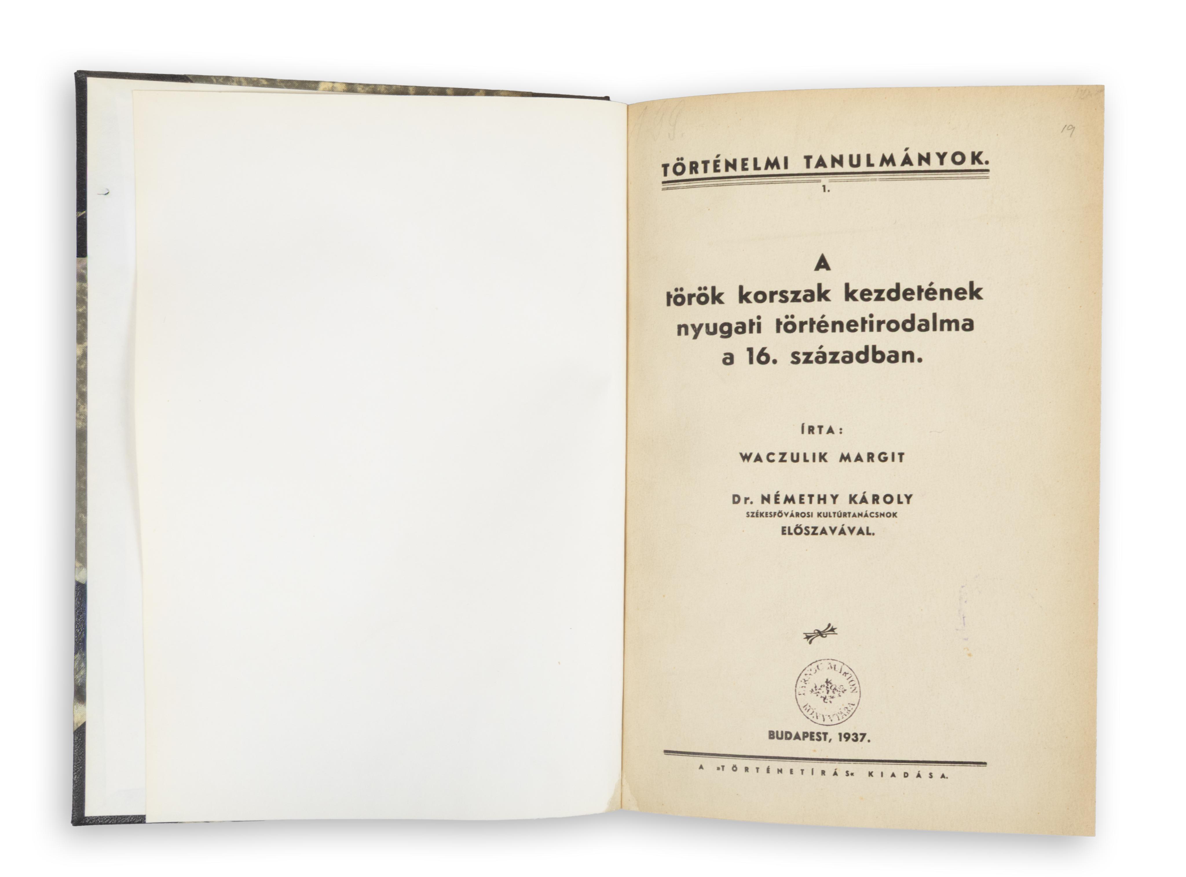 Waczulik Margit: A török korszak kezdetének nyugati történetirodalma a 16. században.