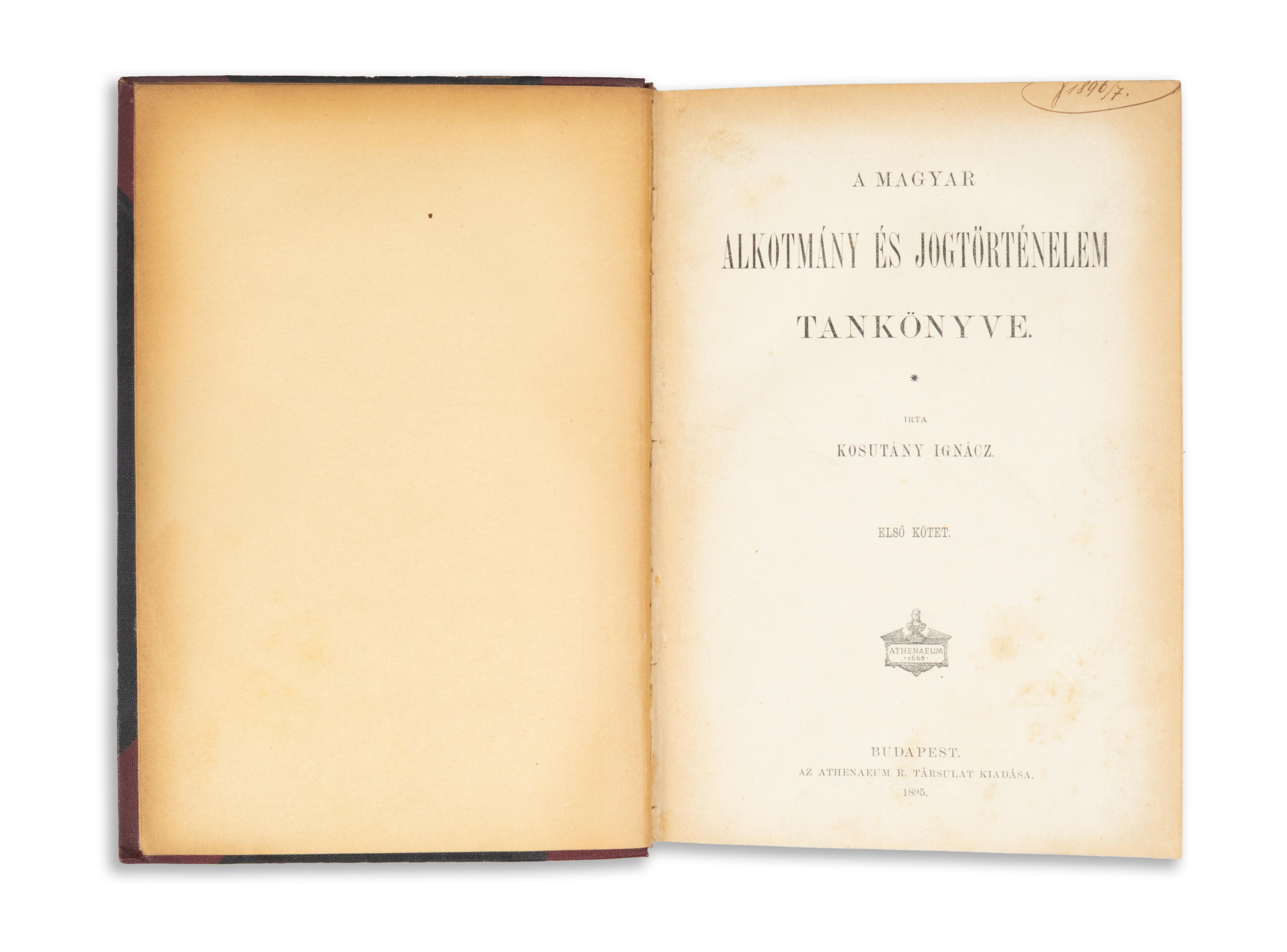 A magyar alkotmány és jogtörténelem tankönyve. I. köt. [unicus]