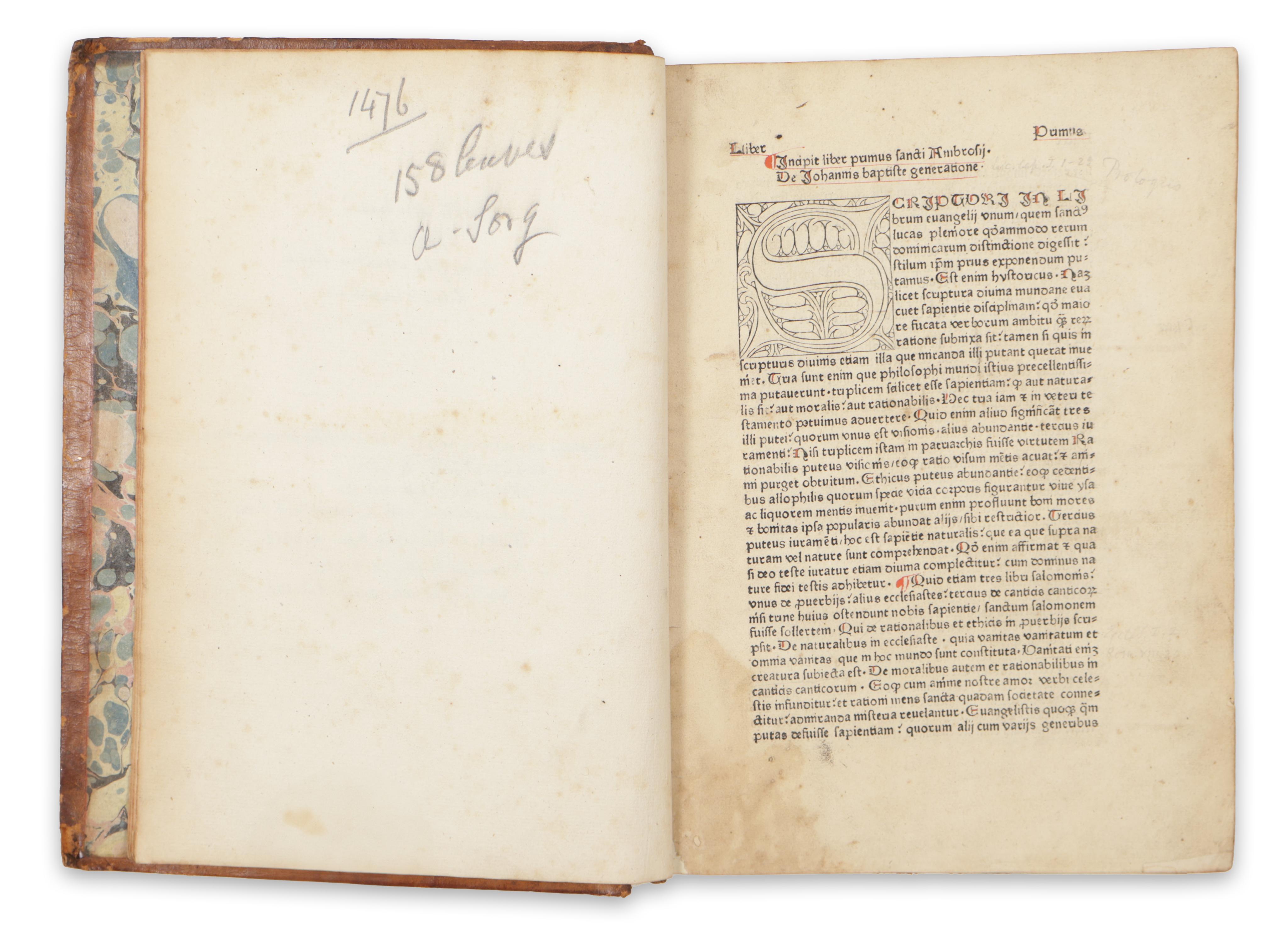 Augsburg, 1476. Anton Sorg.Commentary on the Gospel according to Luke in ten books