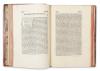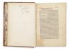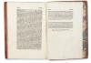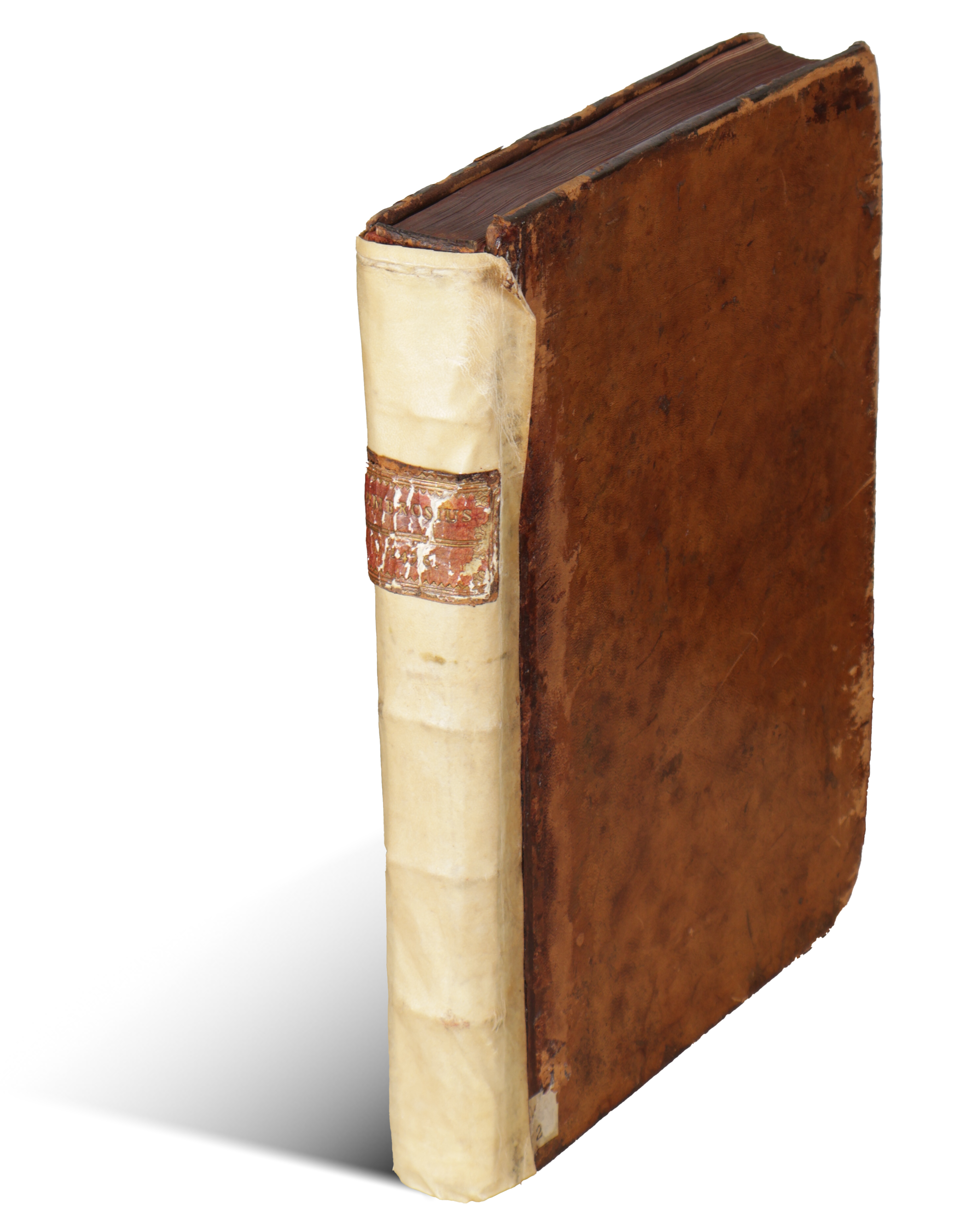 Binding and Provenance Bound in a somewhat later full leather binding with red edges. The spine is a later, repaired full parchment with a title label. The binding is worn, opening and detaching at the boards. Pasted on the front inner board is an ex libris: Ex libris reverendissimi Joannis episcopi Portsmonthensis. Provenance: In the possession of the Bishop of Portsmouth at the end of the 19th century.