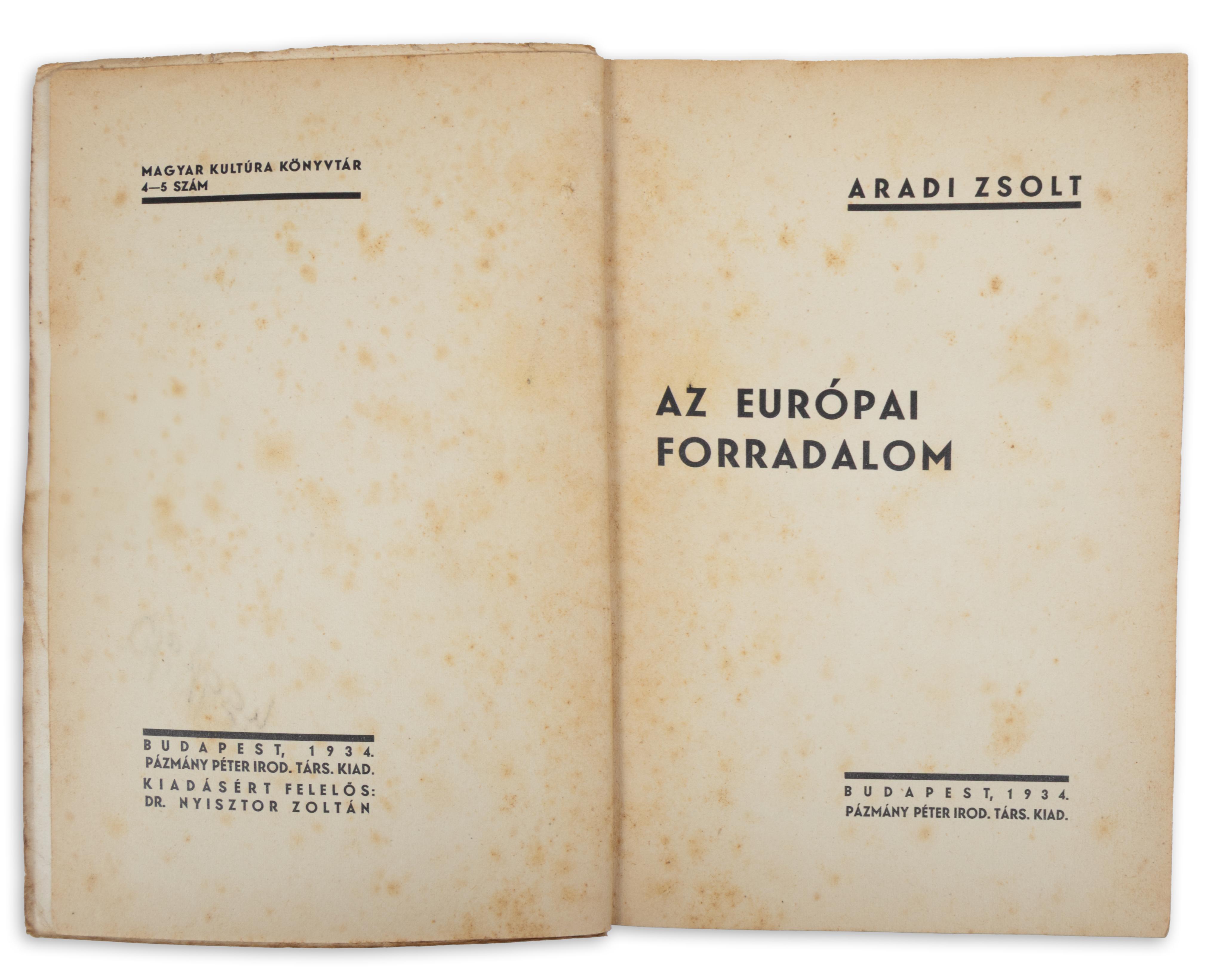 Budapest, 1934, Pázmány P. Irod. T. [Korda Rt.]Ár