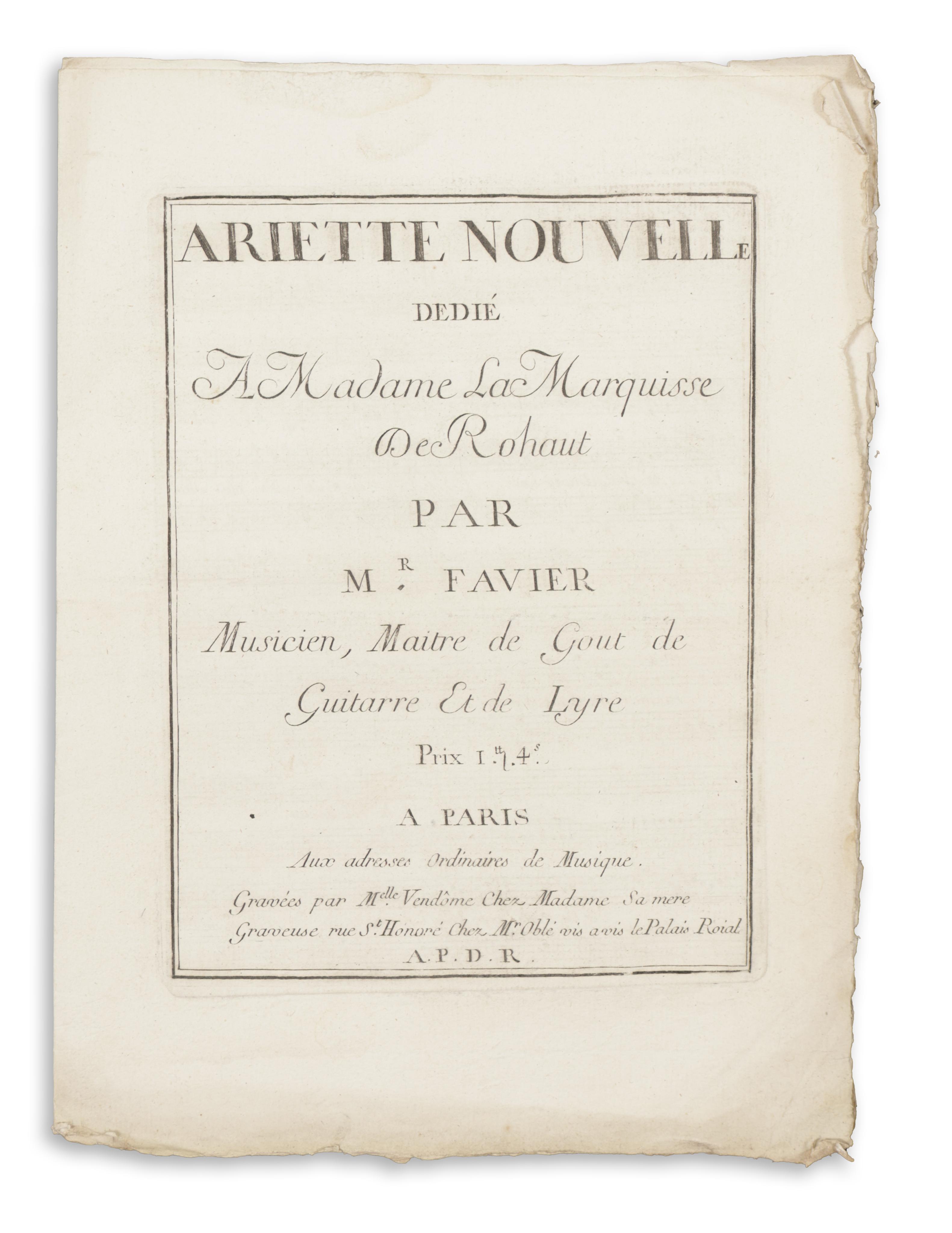 Ariette Nouvelle dedié A Madame La Marquisse de Rohaut par Mr Favier Musicien, Maitre de Gout de Guitarre Et de Lyre