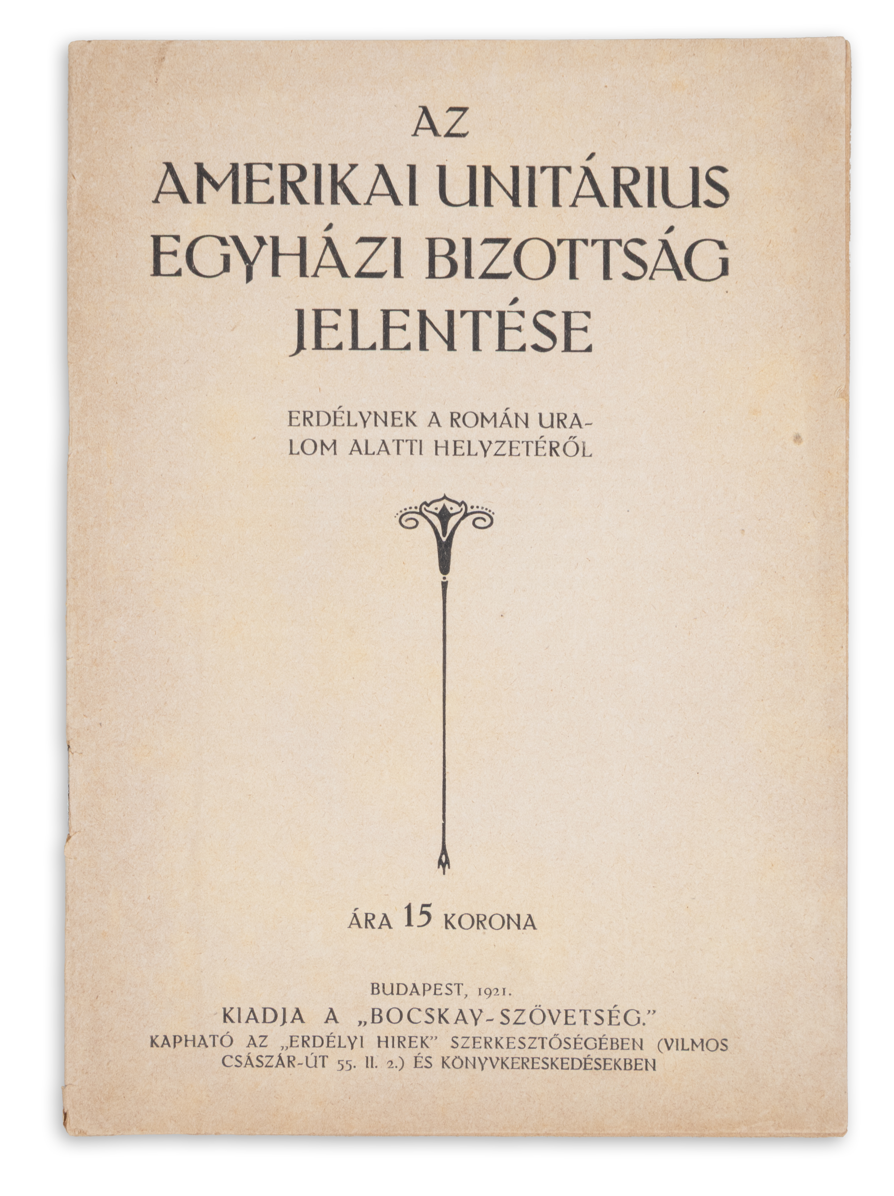 Az amerikai unitárius egyházi bizottság jelentése Erdélynek a román uralom alatti helyzetéről.