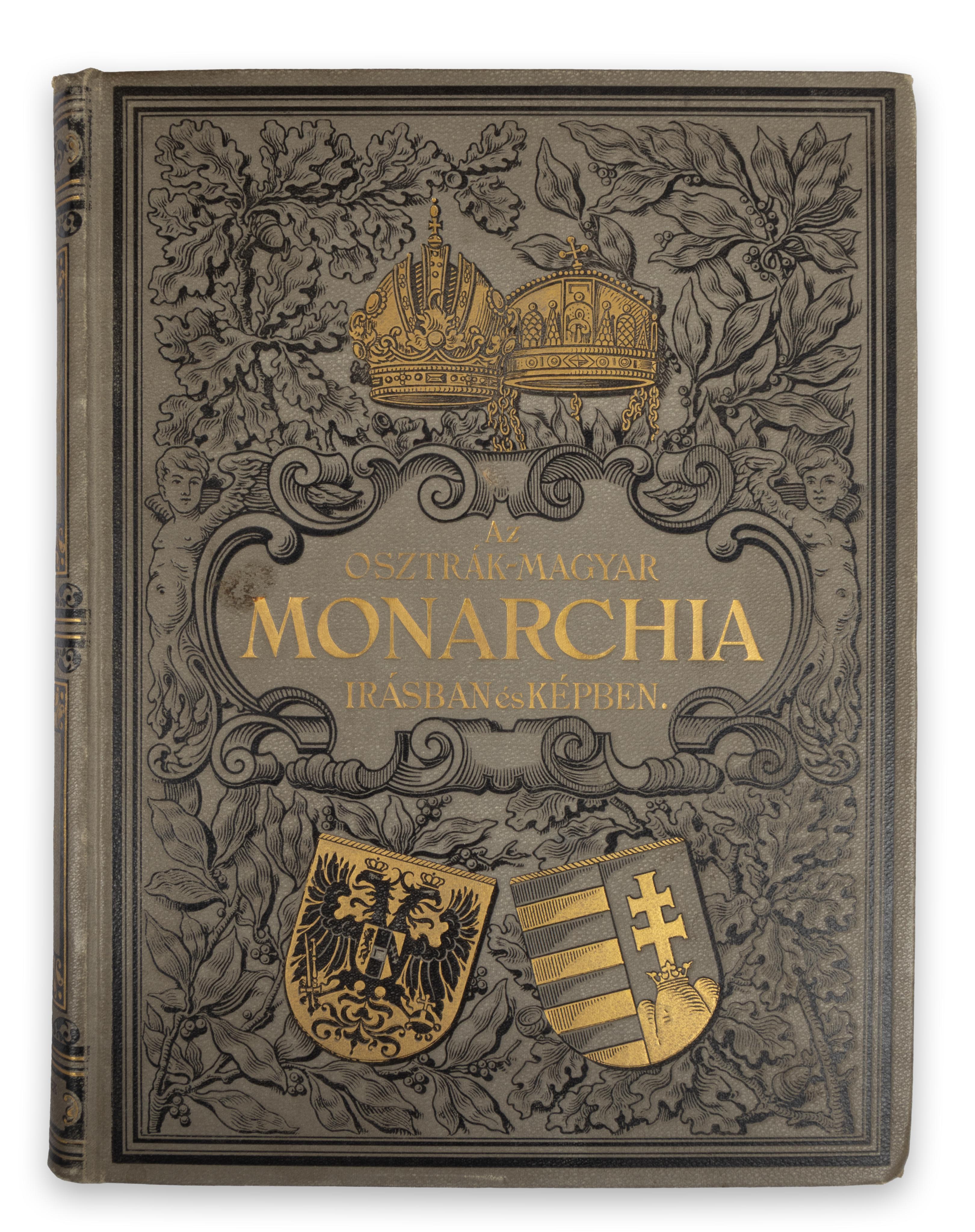 Kiadói dúsan aranyozott, szürke egészvászon Gottermayer sorozatkötésben lévő kötetek aranyozott feliratos, duplakeretes, az osztrák császári korona és a magyar apostoli szentkorona aranyozott ábrájával, az osztrák császári sasos, valamint a magyar kettős keresztes címerpajzzsal ellátott, gazdagon díszített cím fedéllel, aranyozott feliratos, aranyozott, díszes, gazdagon aranyozott lapélekkel, duplakeretes hátlapon a kiadó dombornyomásos emblémájával.