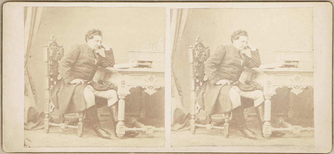 Barabás Miklós műtermében készült ülőalakos sztereo-fotó Egressy Gáborról