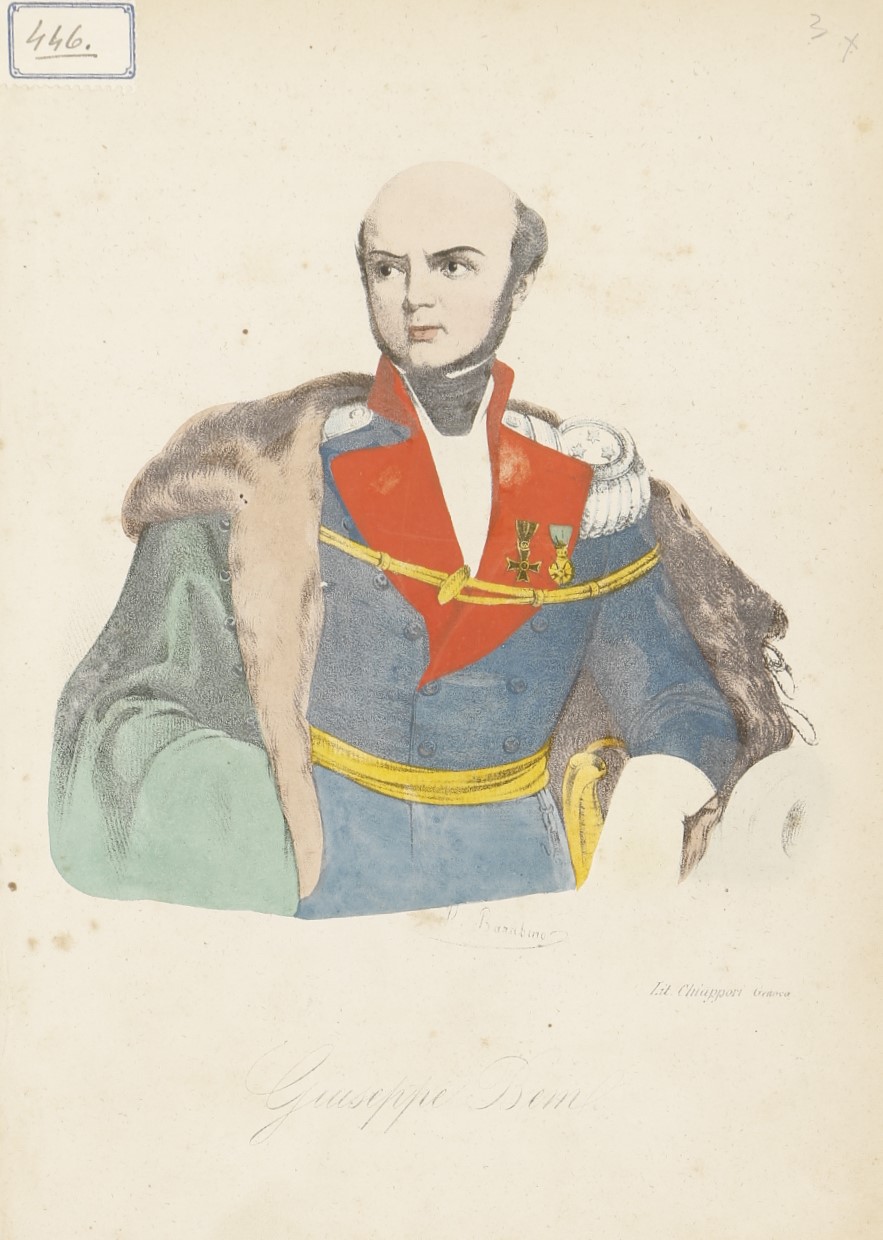Az 1848-49-es szabadságharc (Görgei Artúr mellett) talán legismertebb hadvezérének, Bem József lengyel tábornoknak színezett portréja. Tábornoki egyenruhában, mellén a francia Becsületrend lovagkeresztjével és a lengyel Virtuti Militari IV. osztályú kitüntetésével (Aranykereszt). Carlo Chiappori munkája Pietro Barabino (1822-1869) színezett litográfiája után.