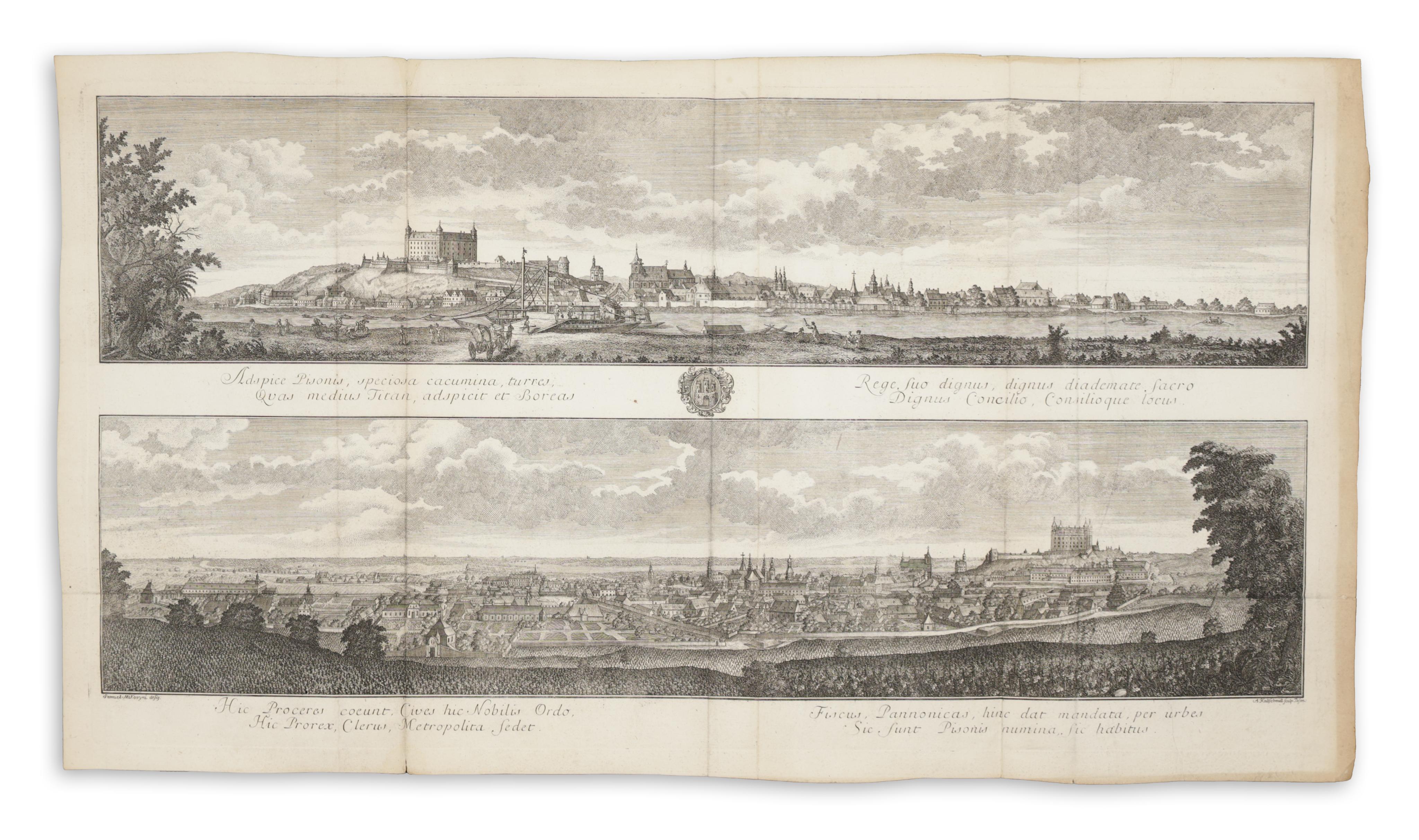 I. 1t. rézm. (allegorikus címkép, Magyarországot ábrázoló nőalakkal és térképpel) + [26, ebből 1 rézm.] + 696p. + 1 kihajt. rézm. t. (Pozsony, kétosztatú, belehelyezve) + 1 kihajt. rézm. térk. (Pozsony vármegye) + 2 kihajt. mell. (Pálffy, Erdődy családfa)