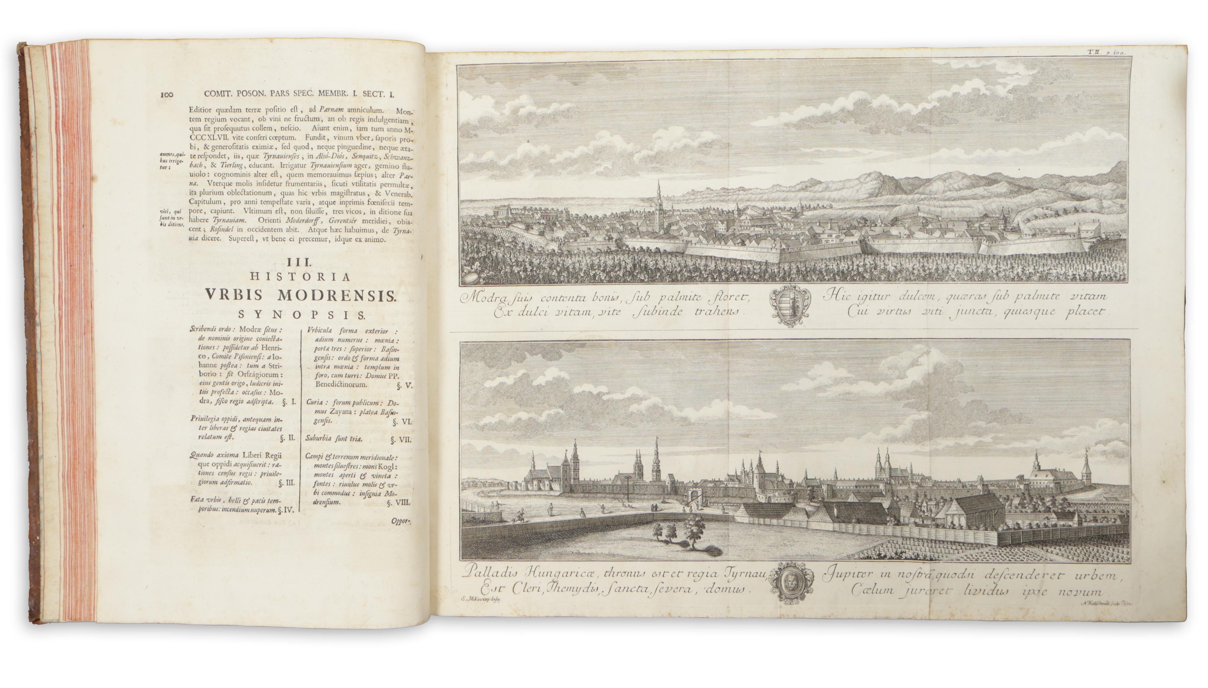 II. [20, ebből 1 rézm.] + 587p. + 3 kihajt. rézm.t. (kétosztatú metszetek, Modor és Nagyszombat, Pozsonyszentgyörgy és Bazin, Vöröskő és Szomolány vára) + 3 kihajt. rézm. térk. (Turóc, Liptó és Zólyom vármegye) + 1 dupla mell. (Révay családfa)