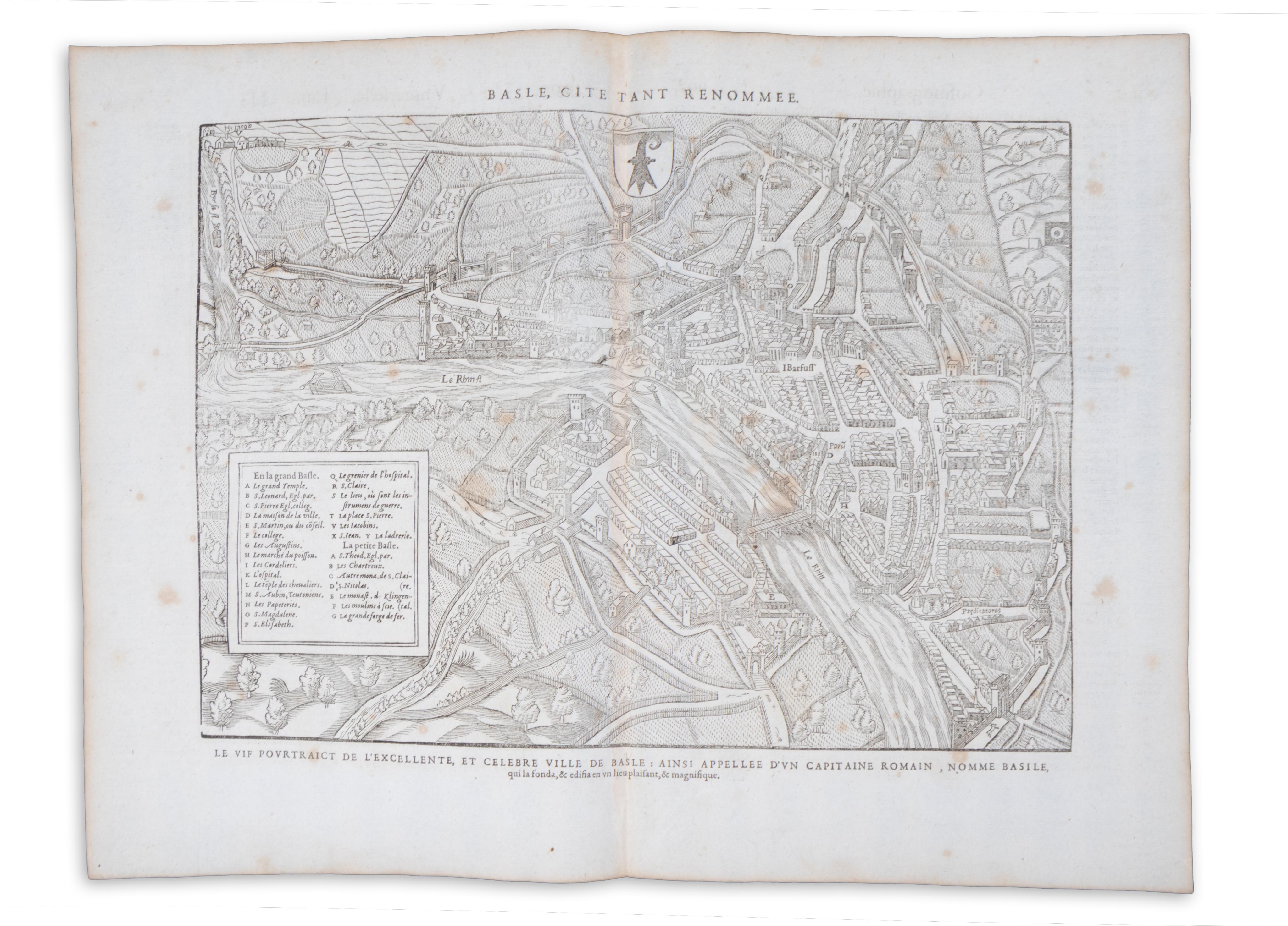 Basle, Cite tant renommée. - Le vif pourtraict de l'excellente, et celebre ville de Basle: ainsi appellée d'un capitaine romain, nommé Basile, qui la fonda, & édifia en un lieu plaisant, & magnifique.