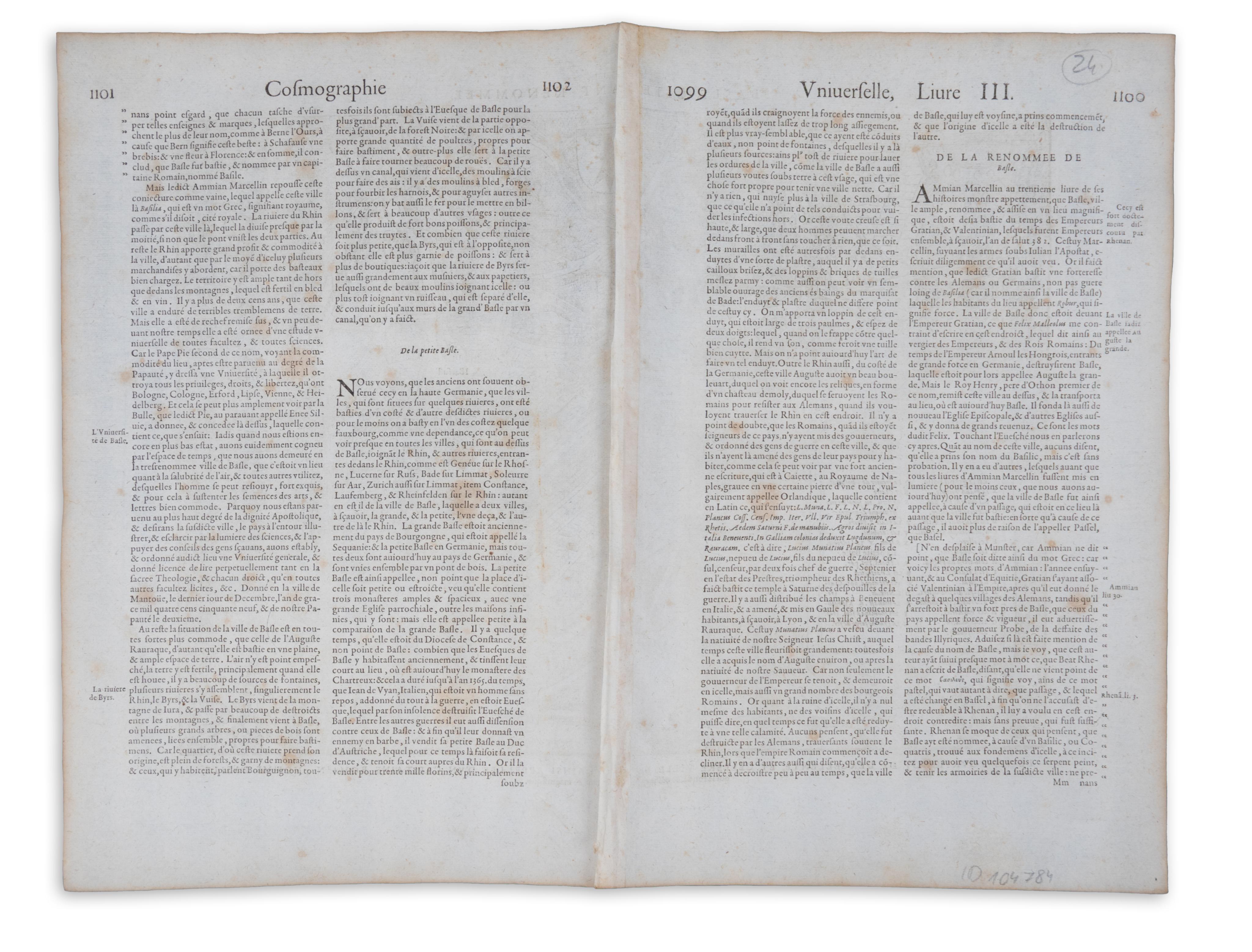 The Cosmographie Universelle by F. de Belleforest was released in a joint edition by Nicolas Chesneau and Michel Sonnius. The partners' aim was to reprint Sébastien Münster's Cosmographie in French. Münster's original work, which was published in Basel in 1544, had been very successful and seen multiple reissues. It had been translated into French in 1552, but Chesneau and Sonnius observed that Münster had primarily focused on his own country, Germany. Consequently, they wished to better address the preferences of their French countrymen.