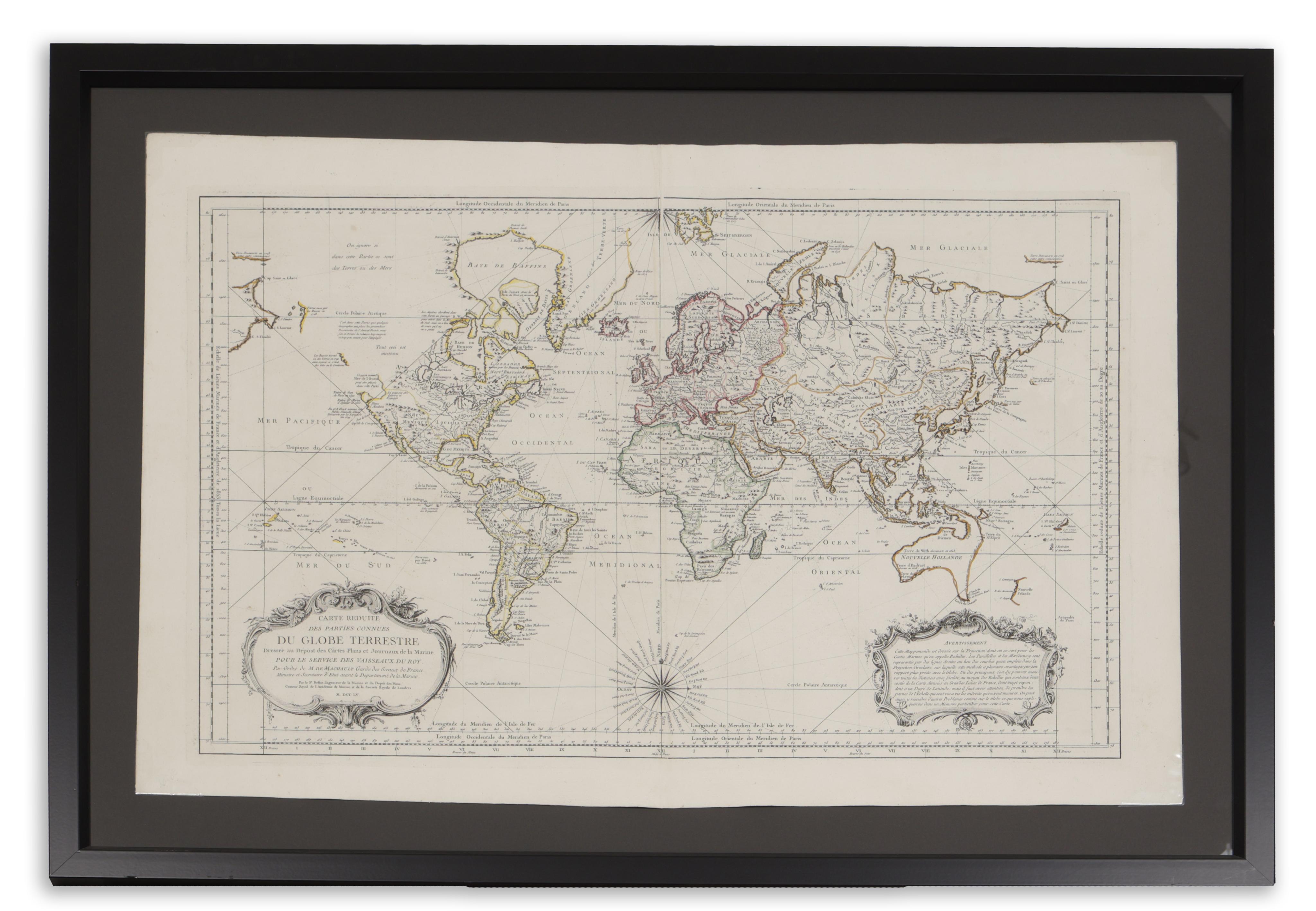 Carte Reduite Des Parties Connues Du Globe Terrestre Dressee au Depost des Cartes Plans et Journaux de la Marine . . . MDCCLV