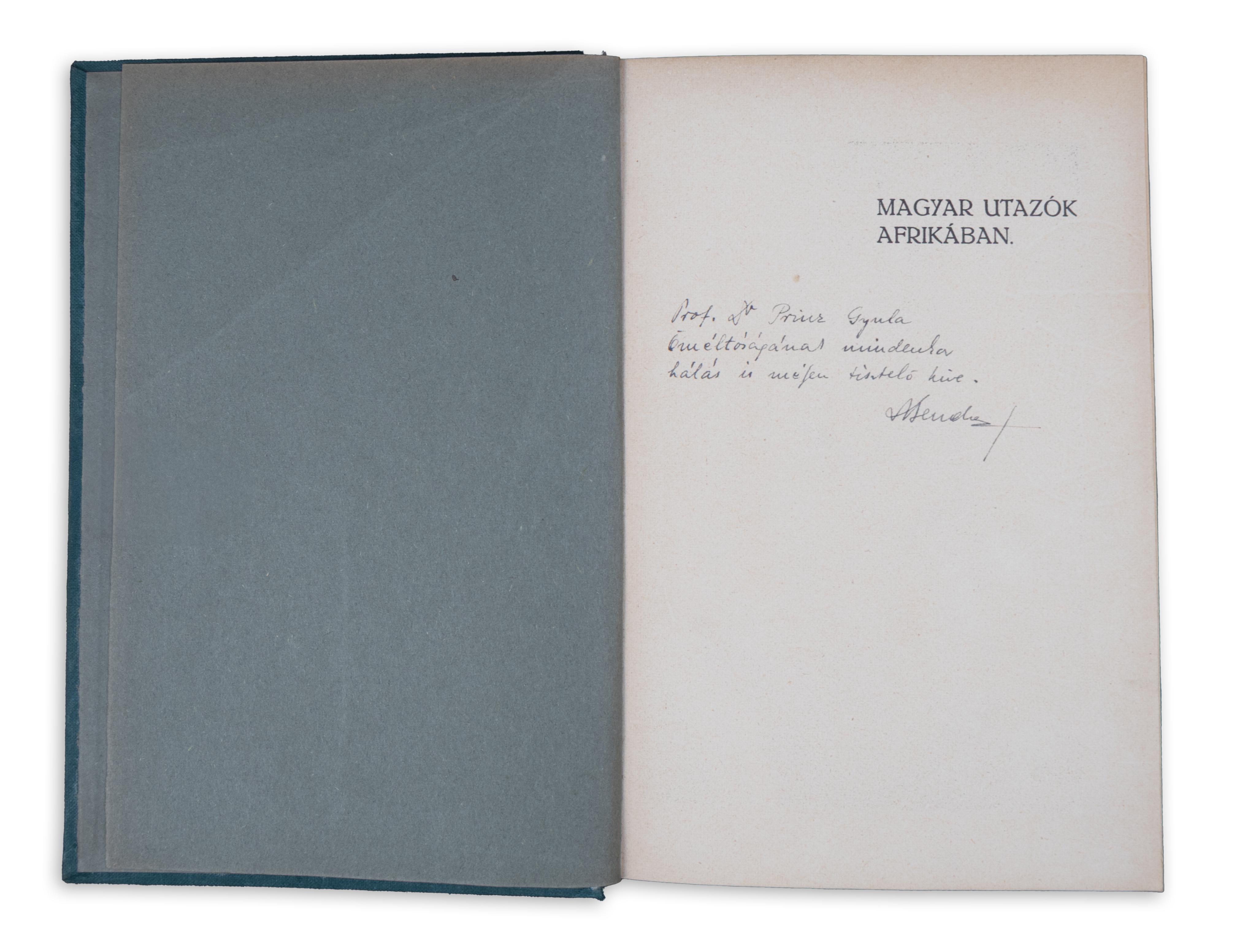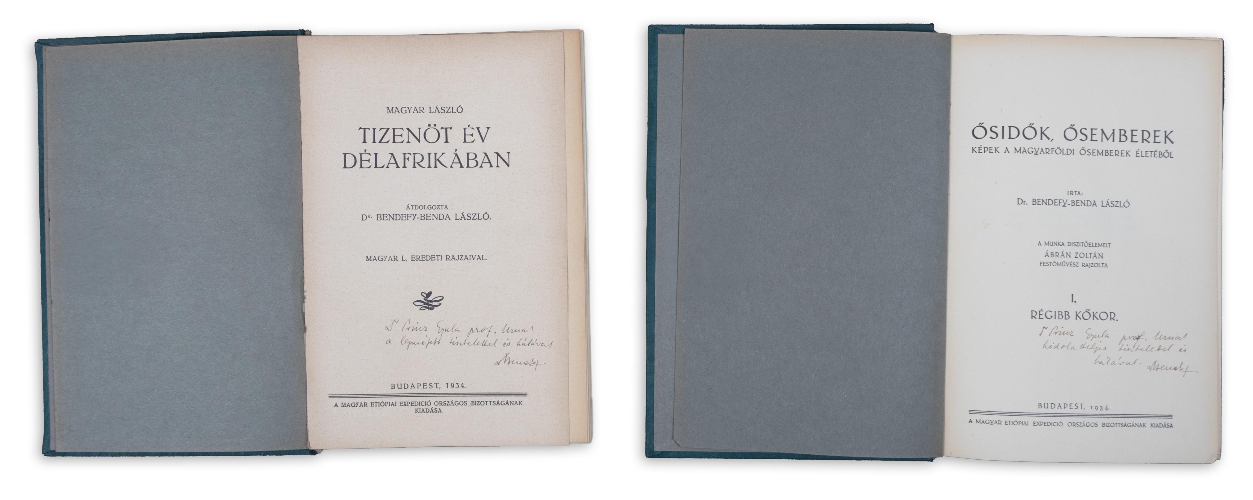 5. Magyar László - tizenötév Délafrikában. Átdolgozta Dr. Bendefy-Benda László. 212 p. + 1 t. + 1 kihajt. térkép. Dedikált: "Dr. Prinz Gyula prof. urnak a legmélyebb tisztelettel és hálával. Benda."