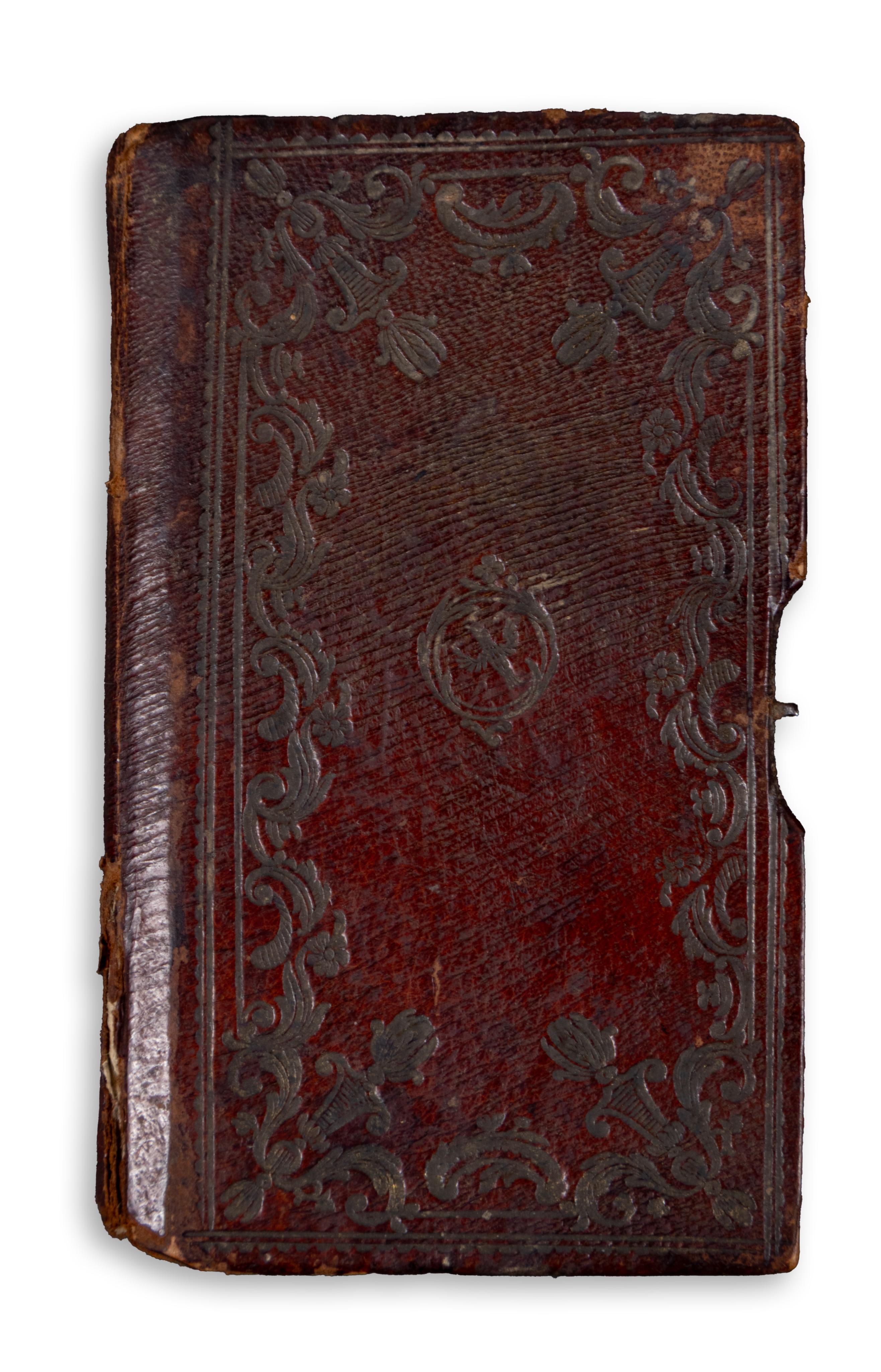 Korabeli egészbőr kötésben, gazdagon mintázott, vaknyomásos táblákkal. Apróbb sérülésekkel, pici hiánynyal, csatja már nincs meg. Levelei tiszták, jó állapotban.