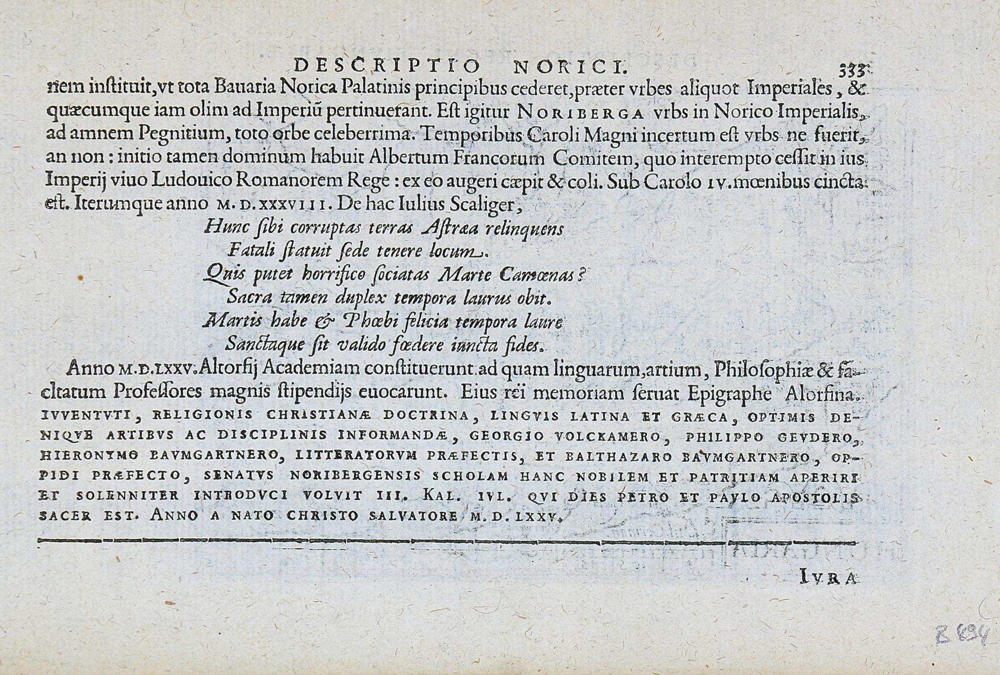 A verson latin nyelvű kísérőszöveggel az előző térképhez (Descriptio Noricum; a Római Birodalom provinciája, mely a mai osztrák tartományok legnagyobb részére és Szlovénia északi vidékére terjedt ki). Kiváló állapotban.