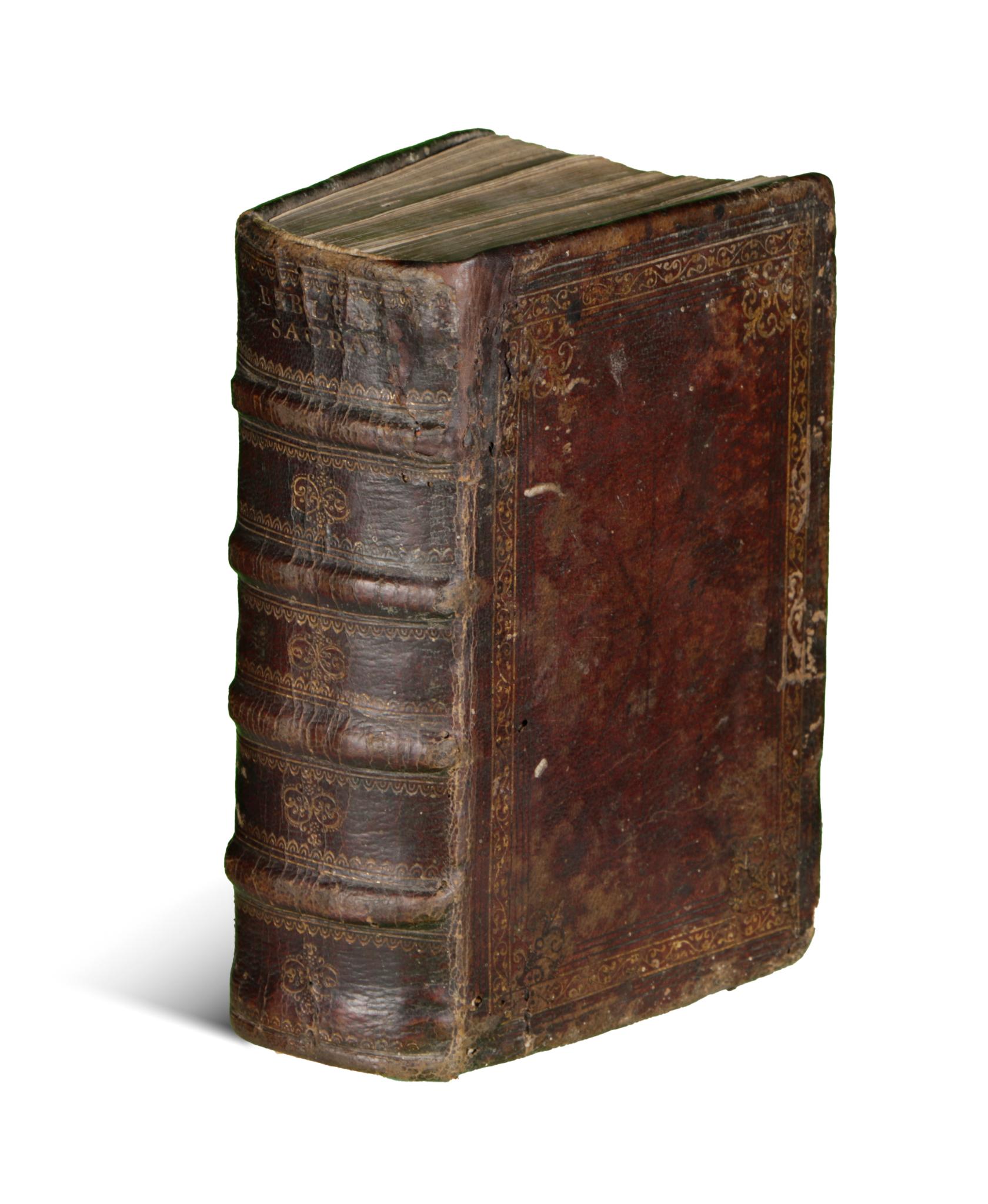 Ez a rendkívül ritka, 1565-ös Biblia latin nyelvű kiadása a híres Johann Hentenius Louvain-i fordításából származik. Ezt a kiadást két oszlopos, keretdíszes formátumban nyomtatták végig, és tartalmazza az apokrifeket. Szép metszetes címlappal, a végén nyomdászjelvénnyel.