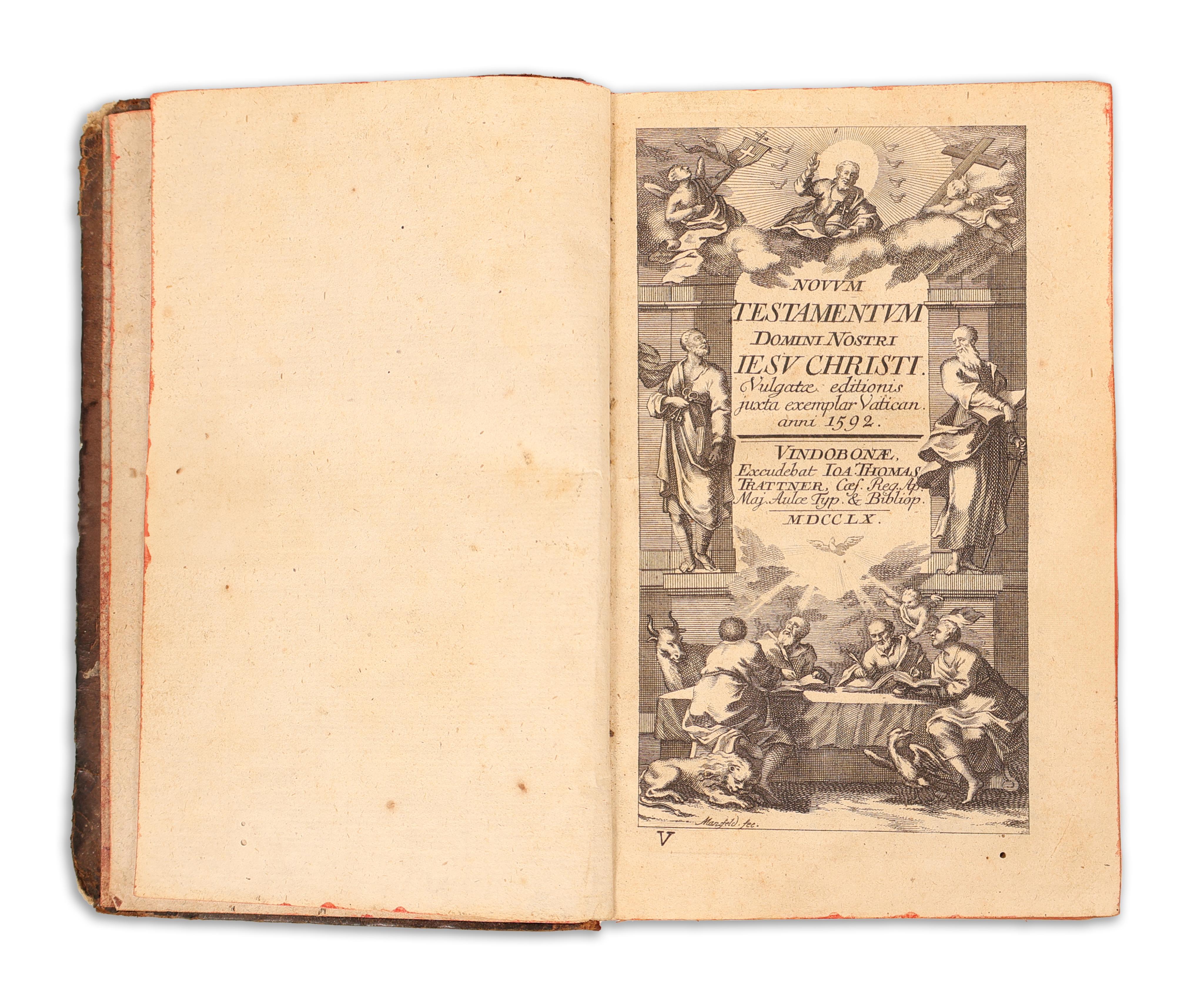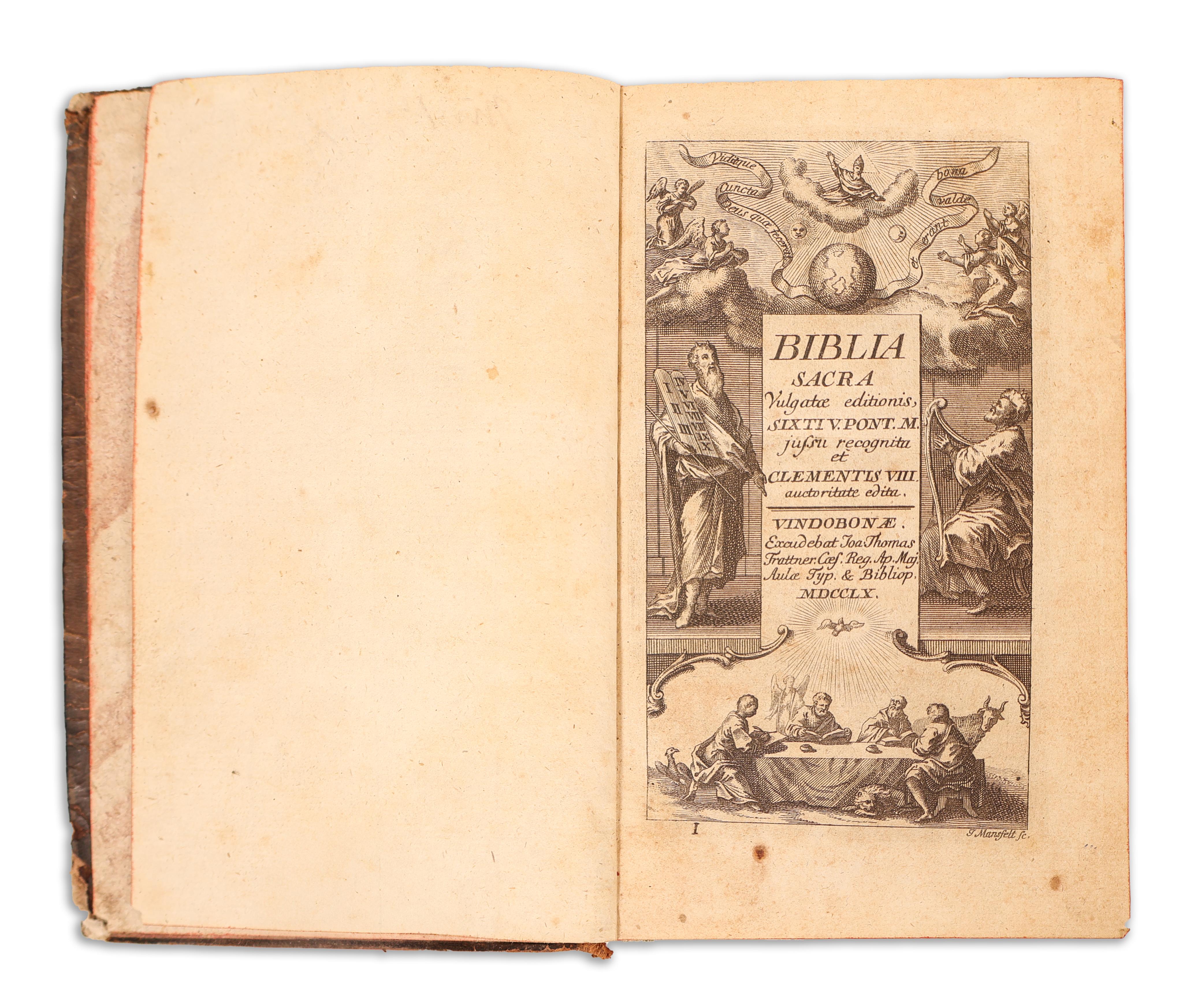 Vindobonae, 1760. Thomas Trattner.Biblia sacra vulgatae editionis, Sixti V. Pont. M. jußu recognita et Clementis VIII. auctoritate edita. – Novum Testamentum domini nostri Iesu Christi...Vatican anni 1592. 1-6. kötet.