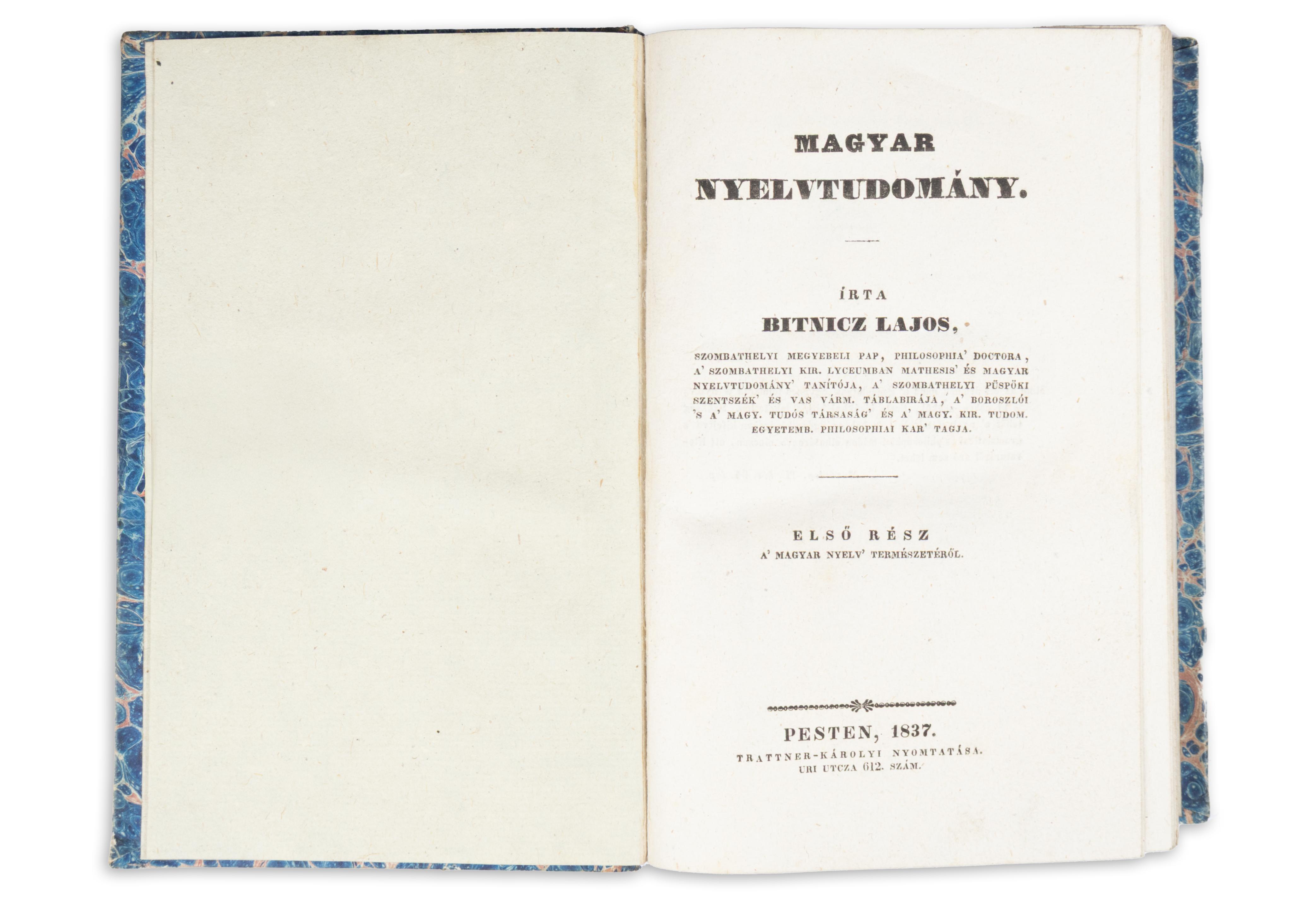 Első rész: A’ magyar nyelv’ természetéről. Második rész: Az irásbeli előadás természetéről. A két rész egybekötve. Nagyon ritka.