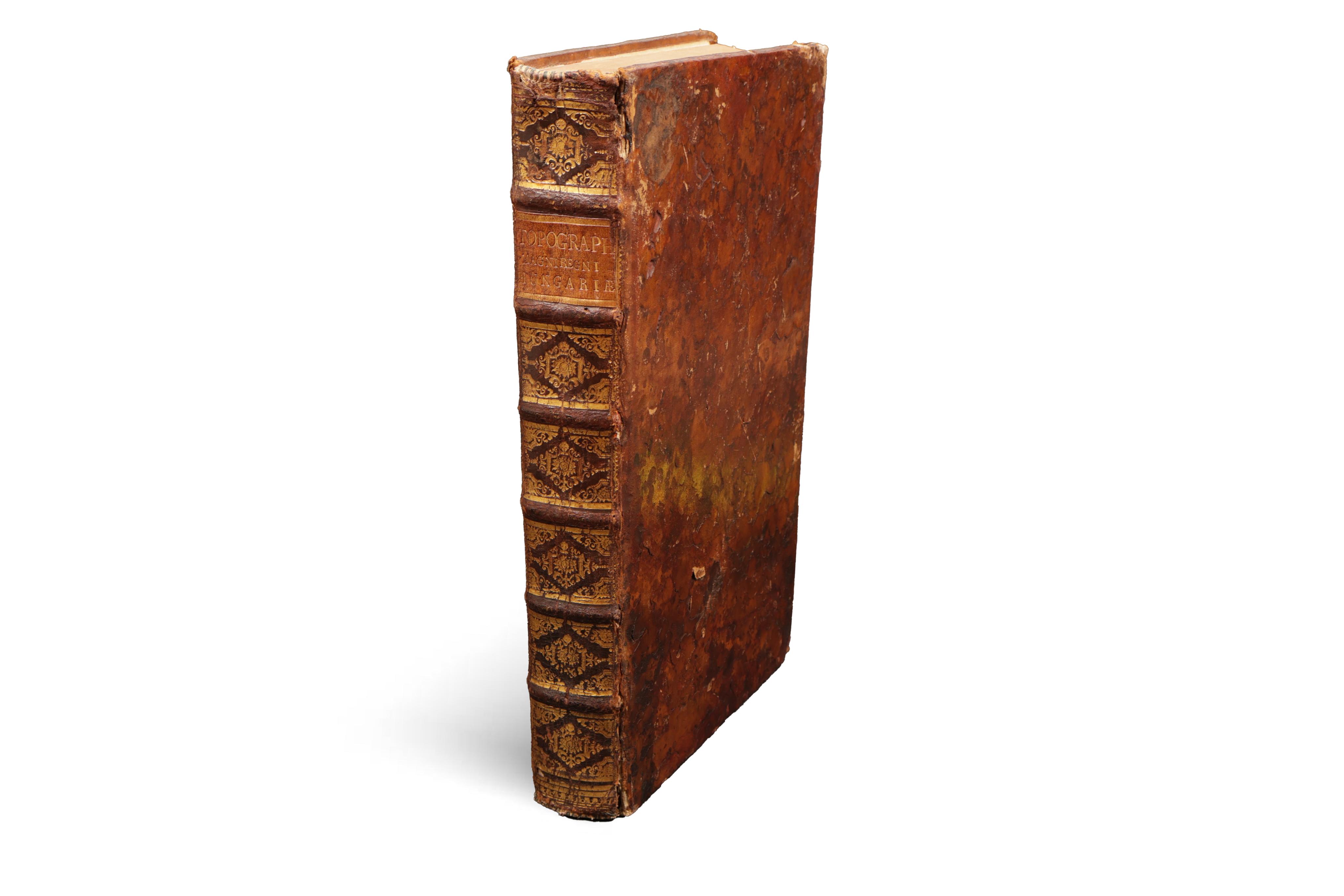 A description of Hungary, with a brief history of all the peoples who once lived and lived here - Huns, Avars, Vandals, Germans, Slovaks, Romanians, Illyrians. In contemporary full leather binding with gilt spine and label. Slightly worn, cracking at spine.