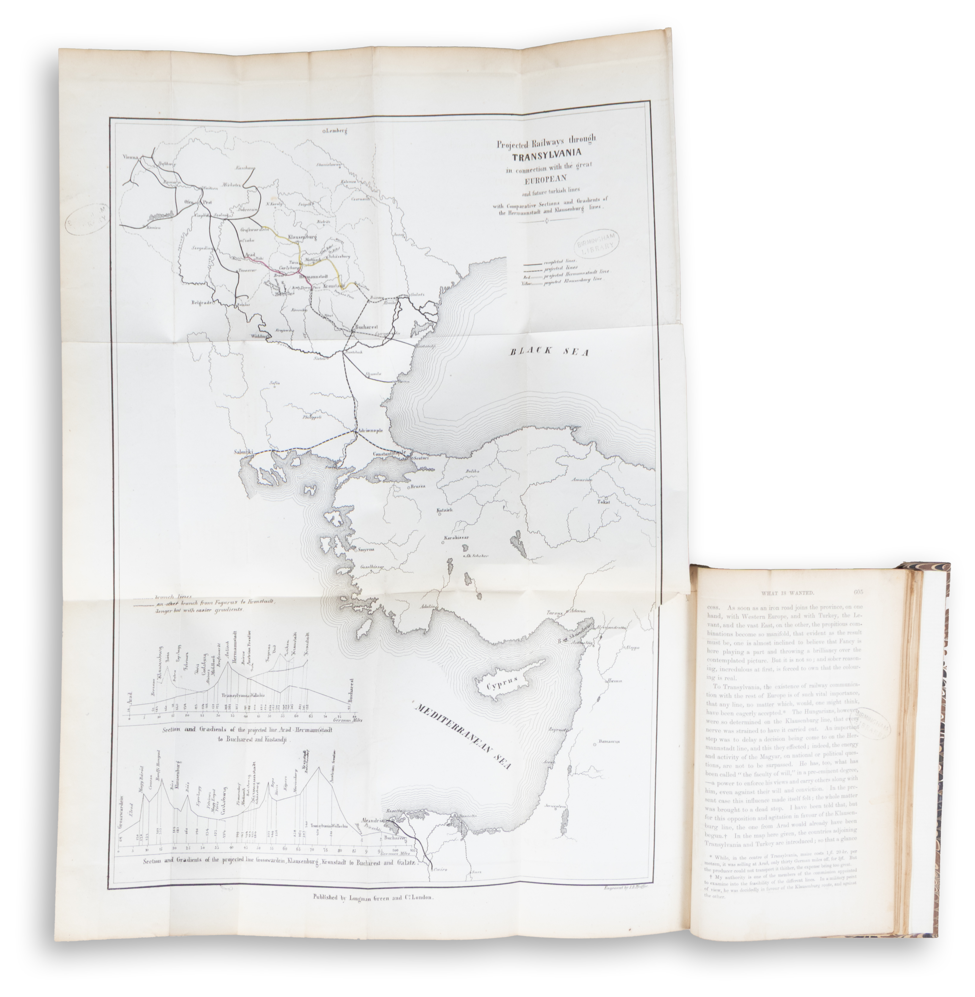 New hardcover, cardboard binding, leather label on spine. Birmingham Library stamps.