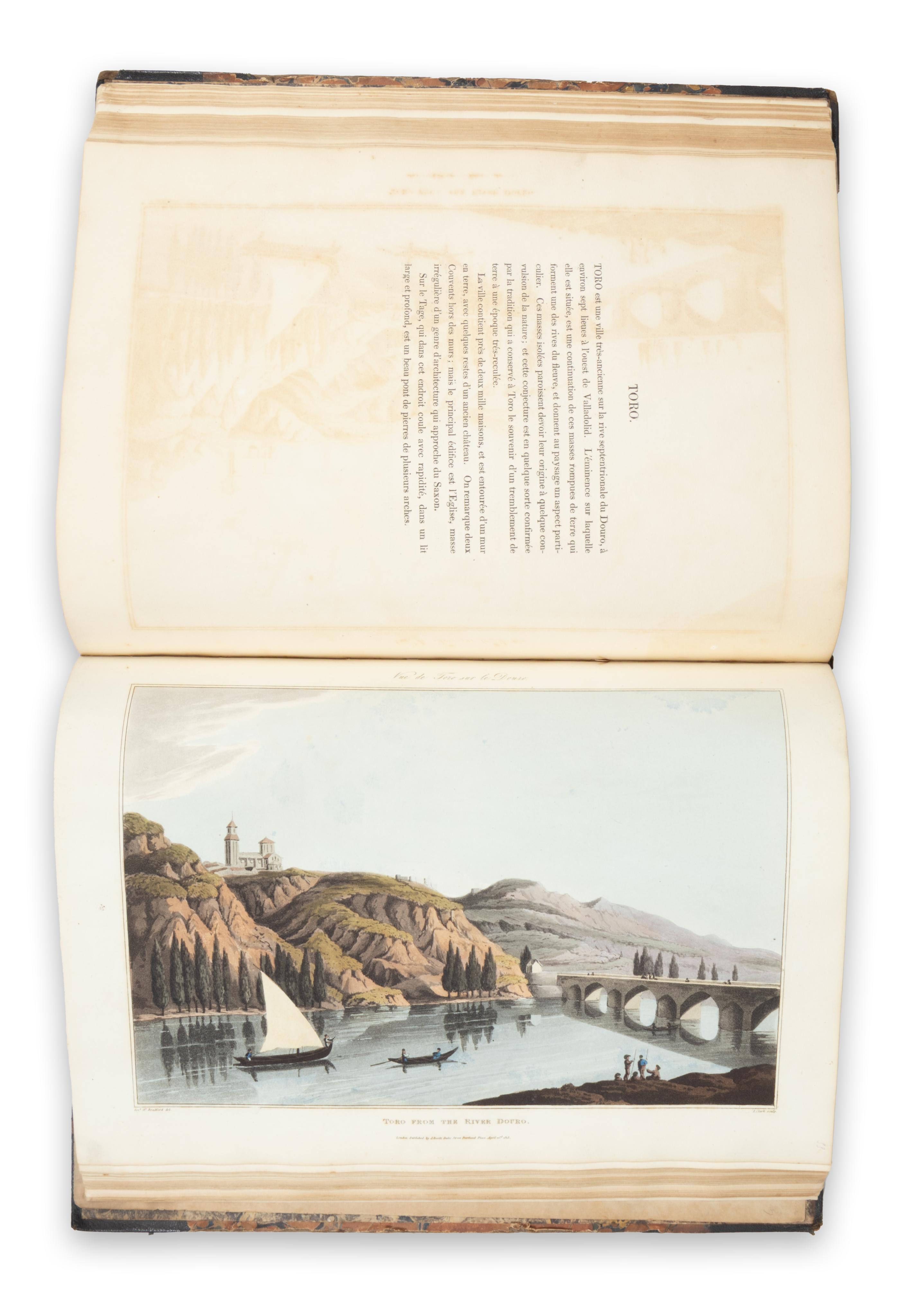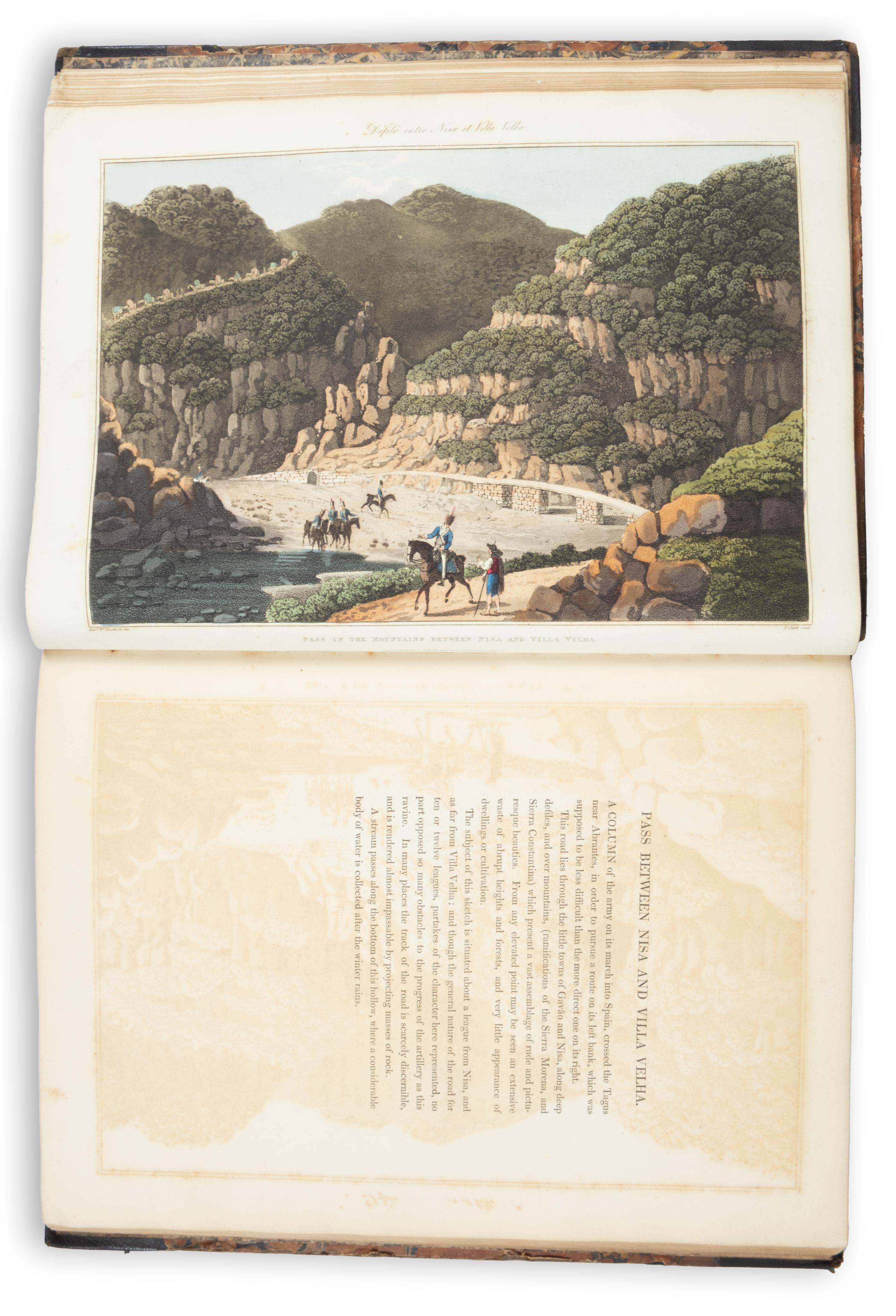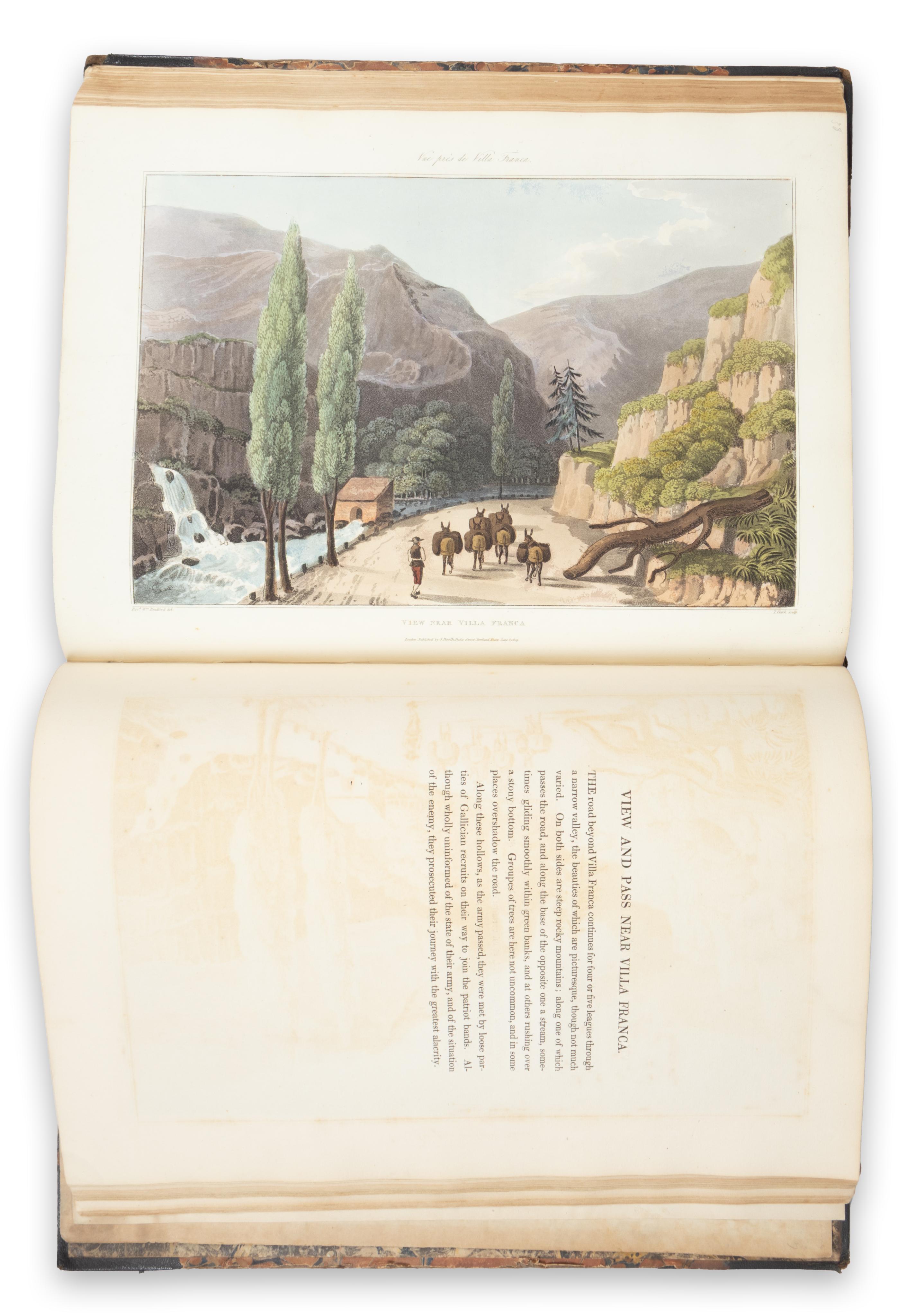 The plates combine topographical views with studies of local costume encountered by Bradford, accompanied by text that follows the movements of the British forces from August 1808 to January 1809. Noted for their grandeur and gentle beauty, the aquatints allude only subtly to the devastation of the Napoleonic Wars, standing in marked contrast to the harrowing contemporary prints of Francisco de Goya y Lucientes.