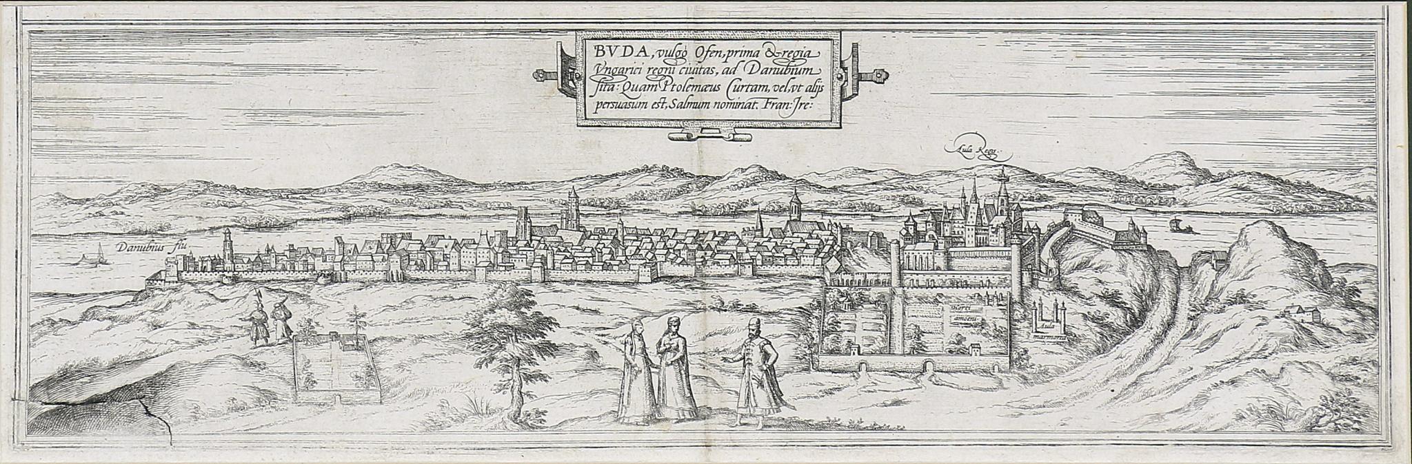 Buda látképe – Buda, vulgo Ofen, Prima et Regia Ungarici Regni Civitas, ad Danubium Sita; quam Ptolemaeus Curtam, vel, ut Aliis Persuasum est, Salnum Nominat. Fran Jre.