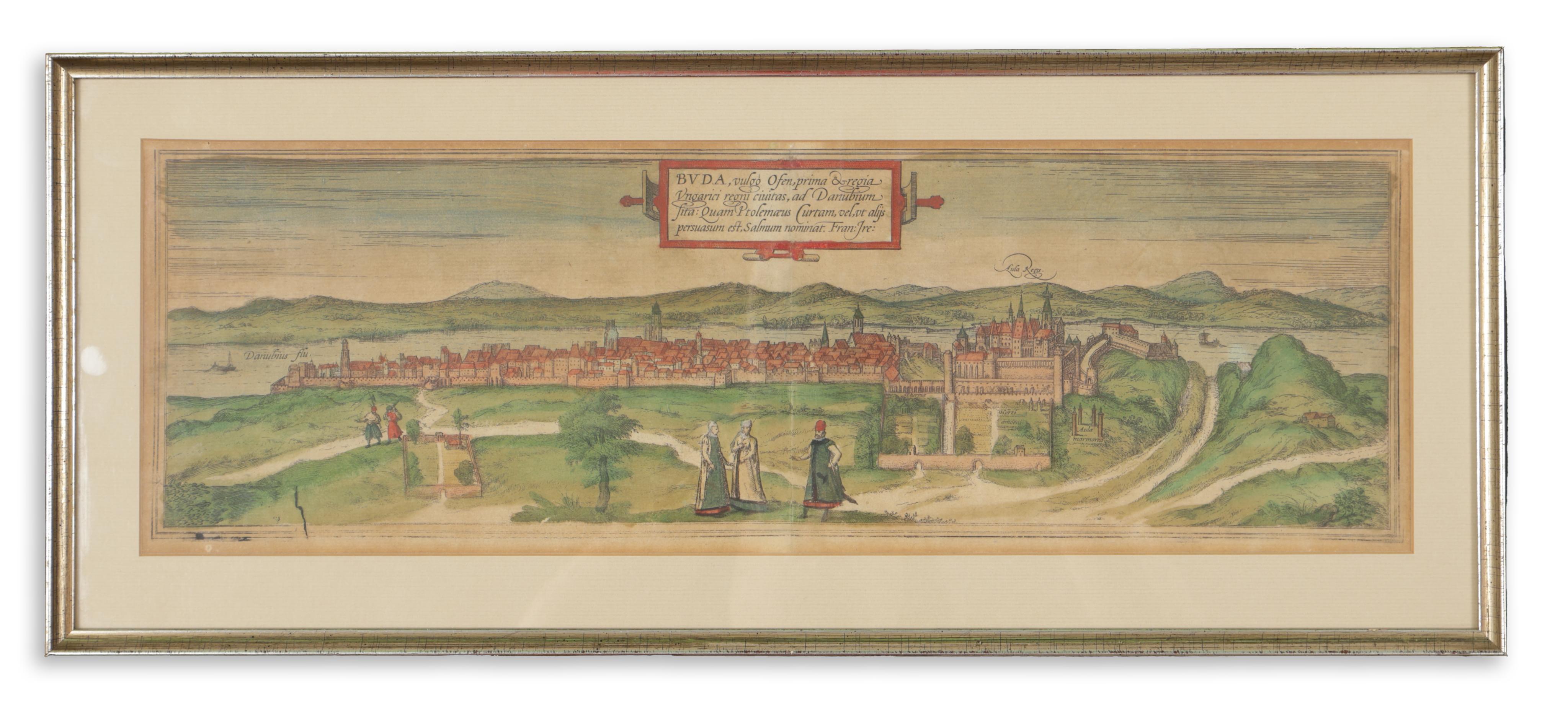 Buda látképe nyugatról felvéve, színezett rézkarc és rézmetszet. Készítőjét nem ismerjük. Braun - Hogenberg fő műve, a „Civitates orbis terrarum” első kötetének kölni kiadásaiban jelent meg (először 1572-ben), Bécs látképével közös 41-42. lapon.