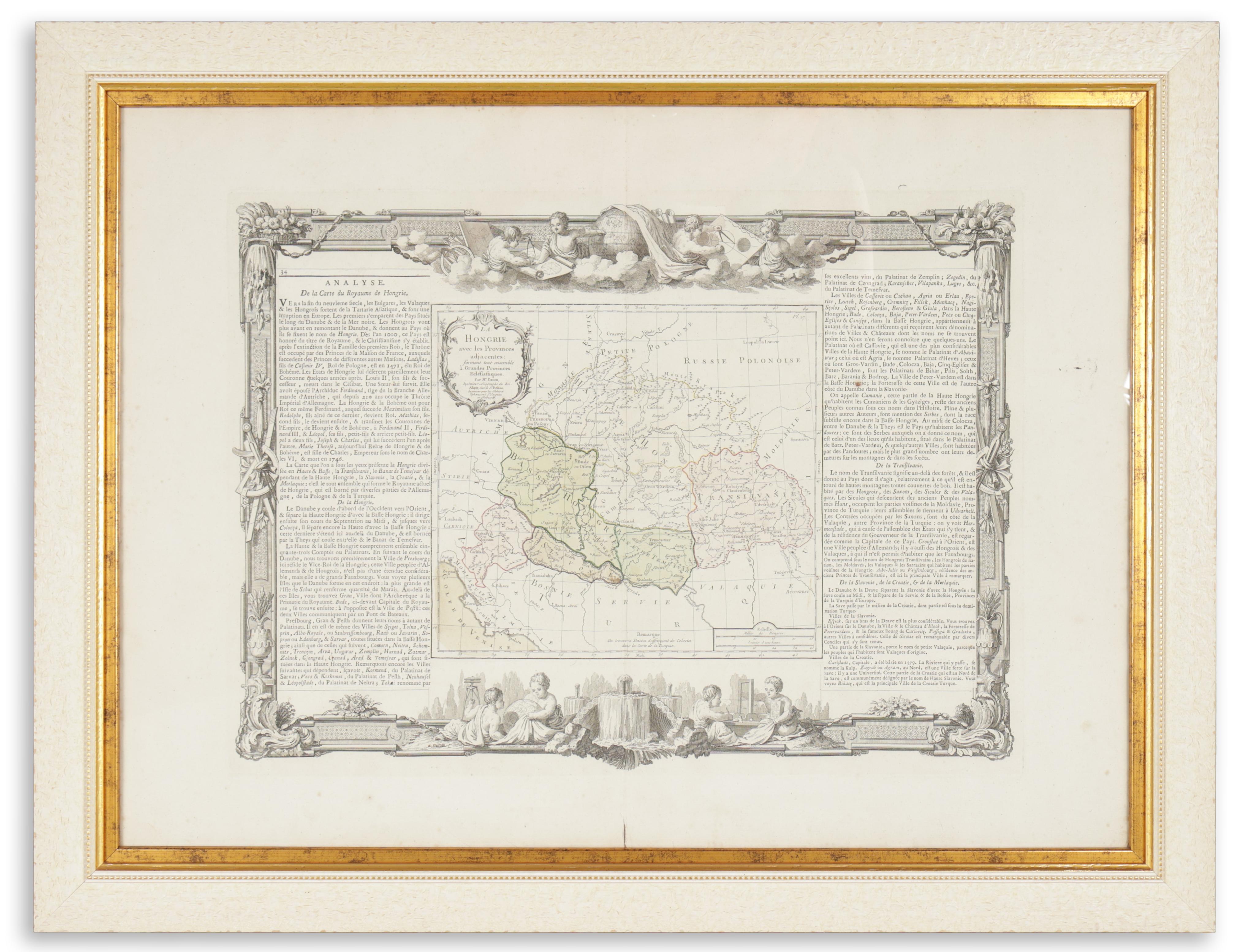A French administrative map of Hungary, with two new ecclesiastical administrative boundaries in the Great Plain. Coloured copper engraving.