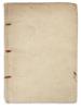 In contemporary paper binding, with three leather straps threaded through the spine, uncut pages. The year is written in red ink on the board