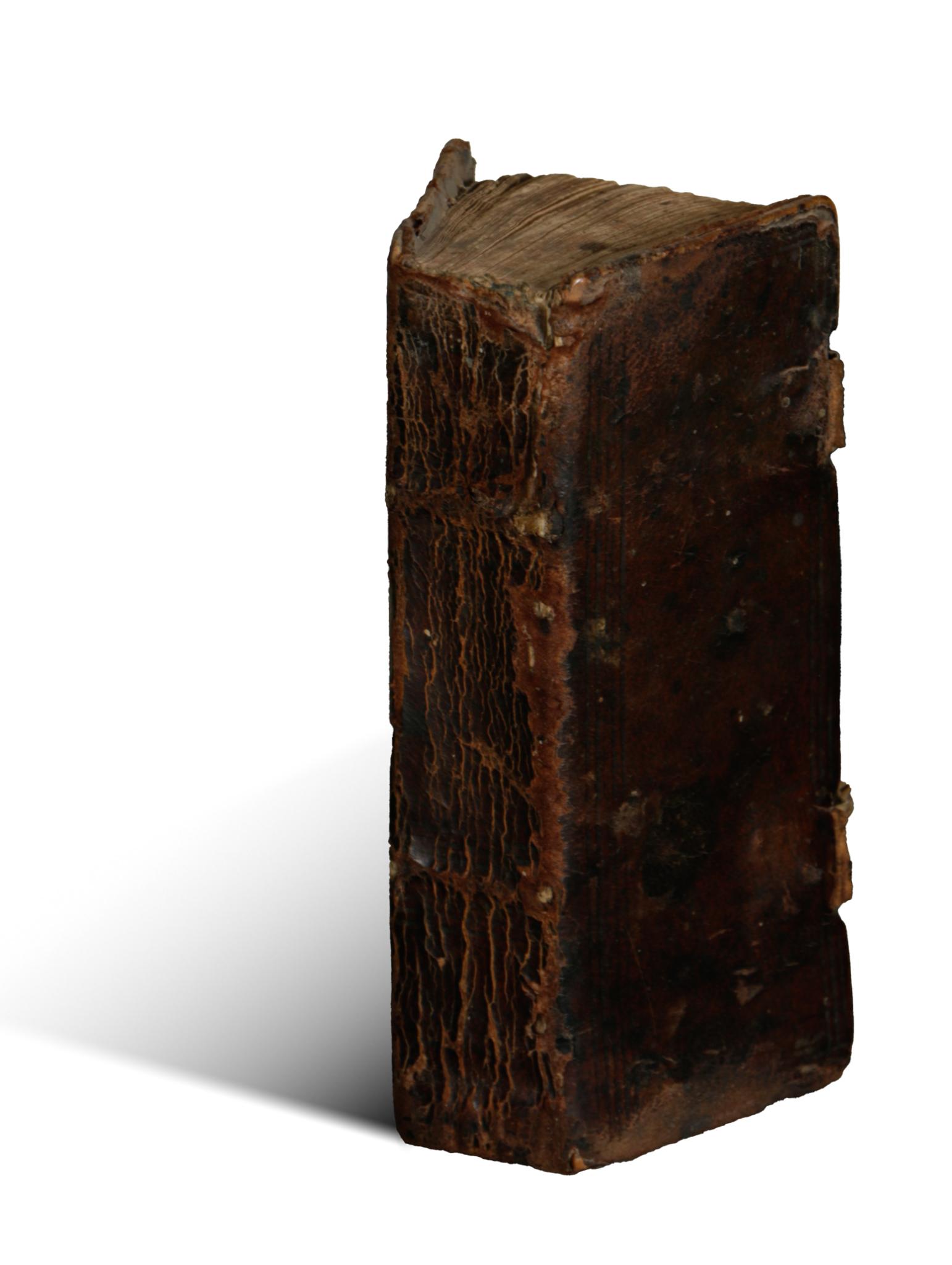 Bound in period full-leather. The leather is beginning to detach at the top of the spine. Clasps are missing.