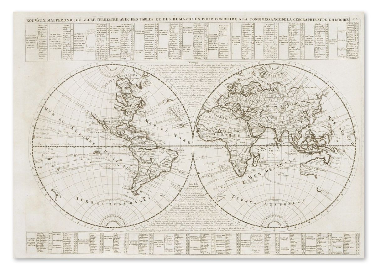 Nouveaux Mappemonde Ou Globe Terrestre Avec Des Tables Et Des Remarques Pour Conduire A la Connoissance De La Geographie Et De L'Histoire